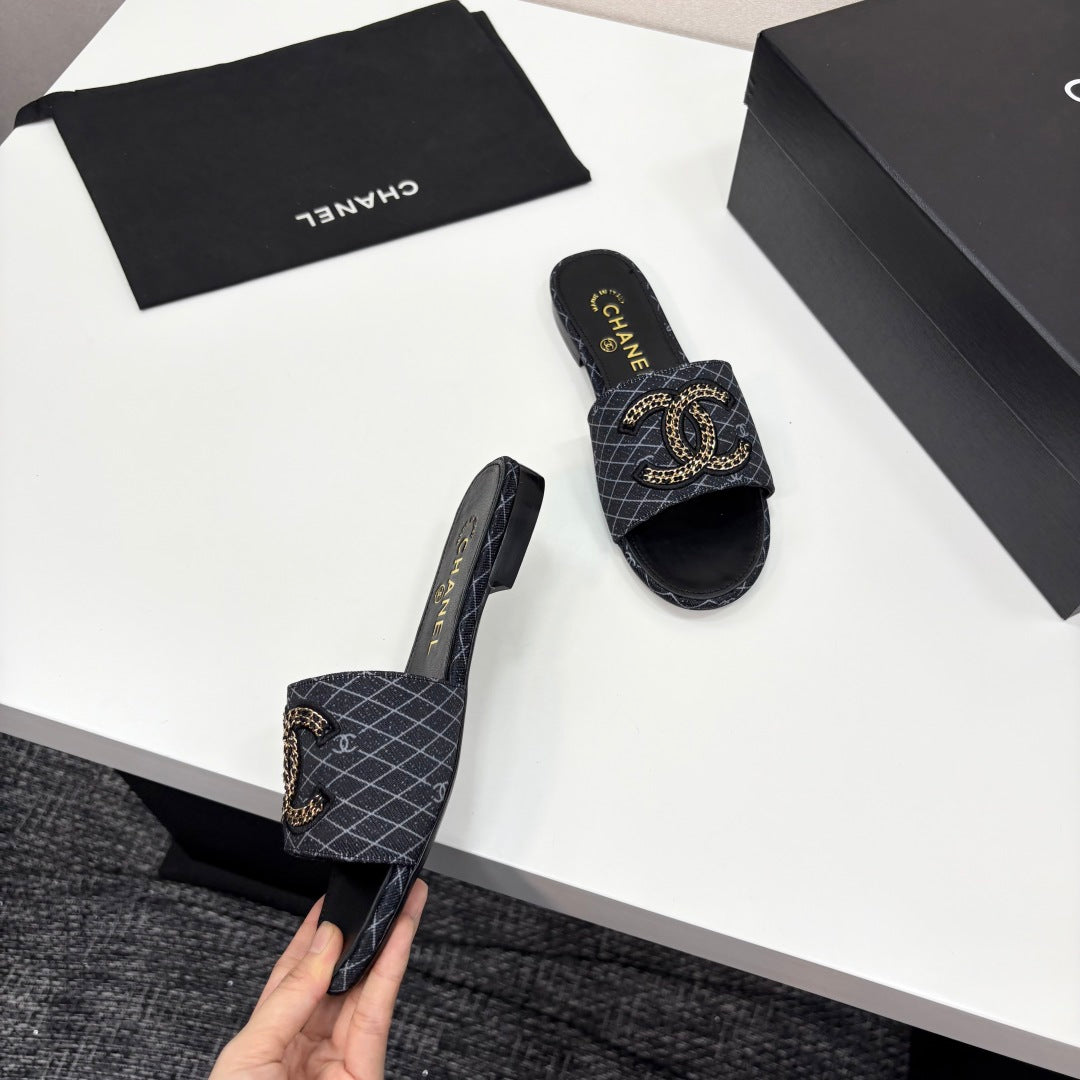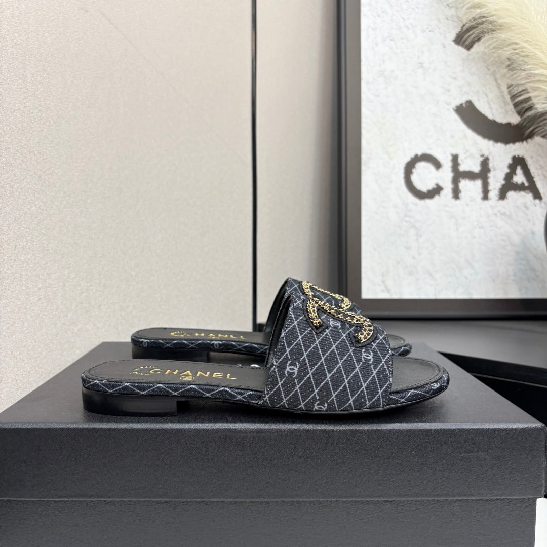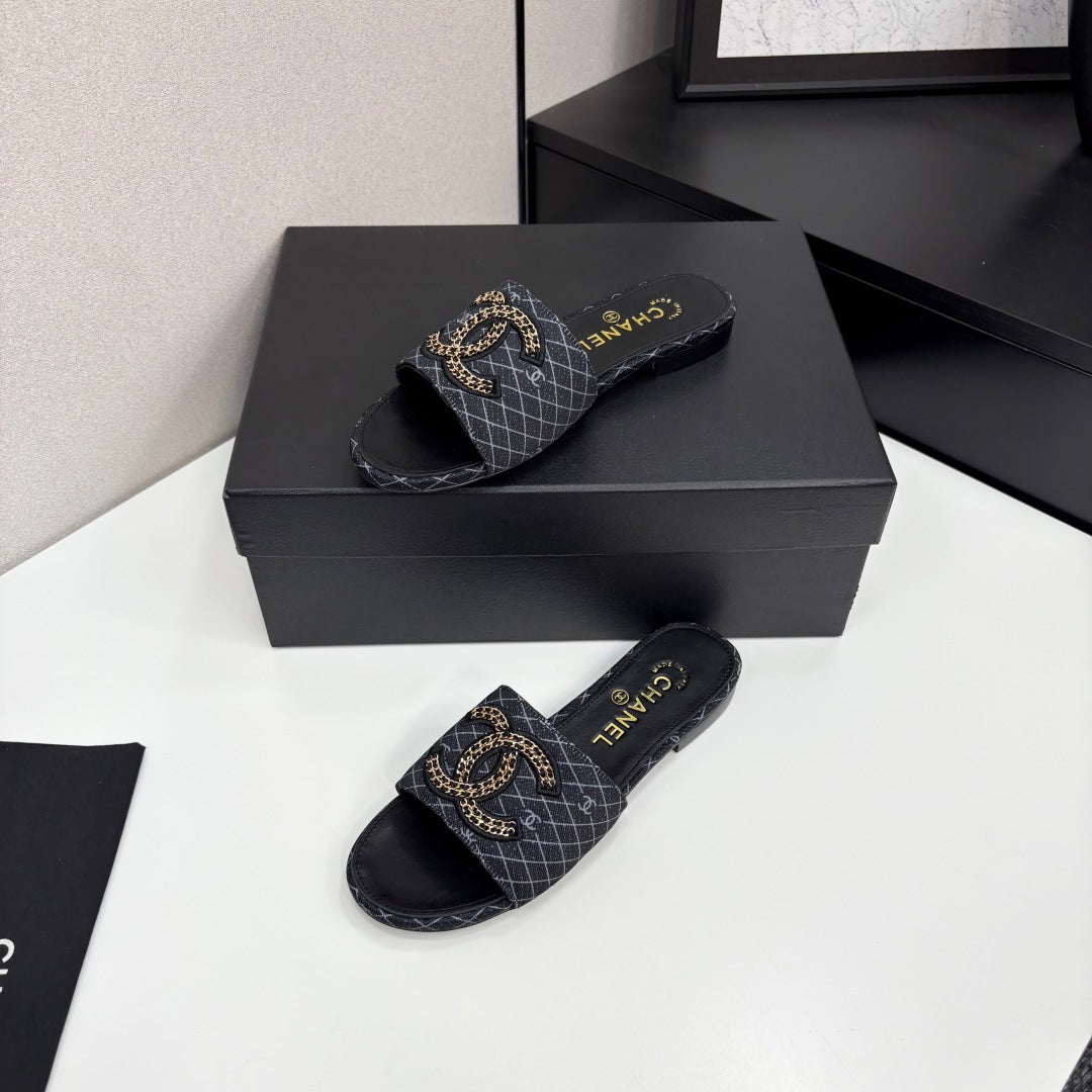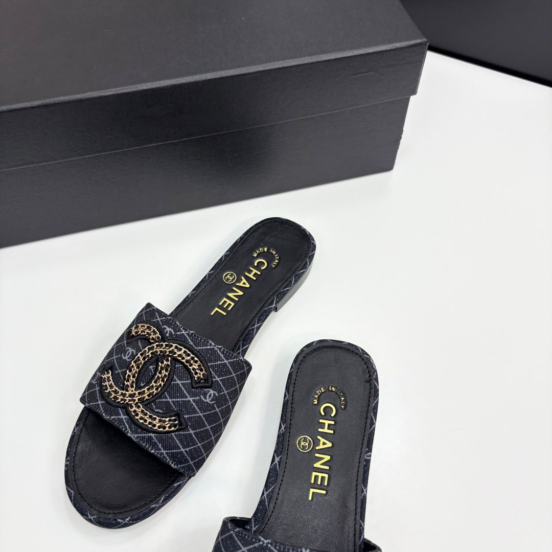 CC 25 Doubble Chain Embroidered Slippers Black Fabric 352495