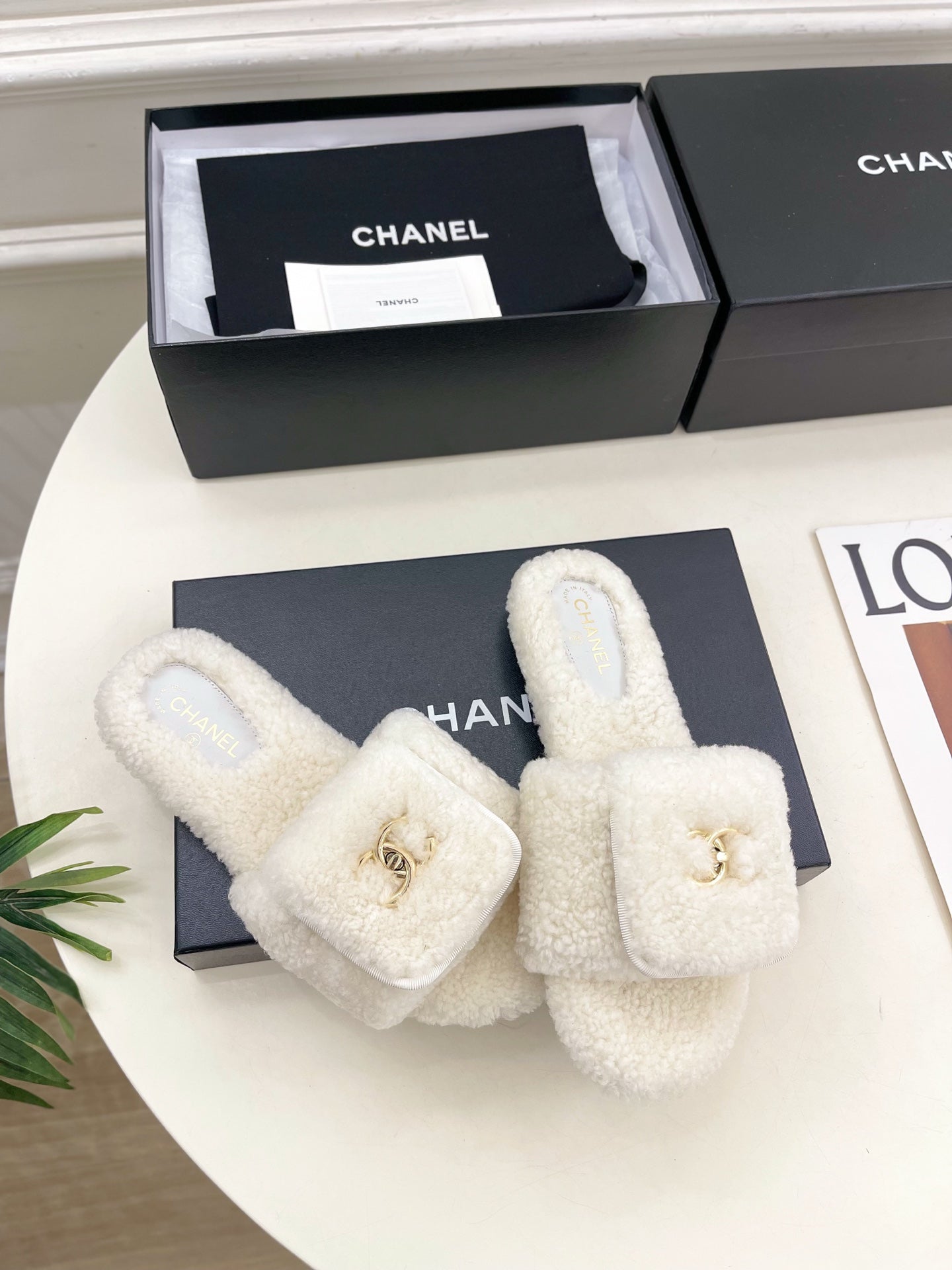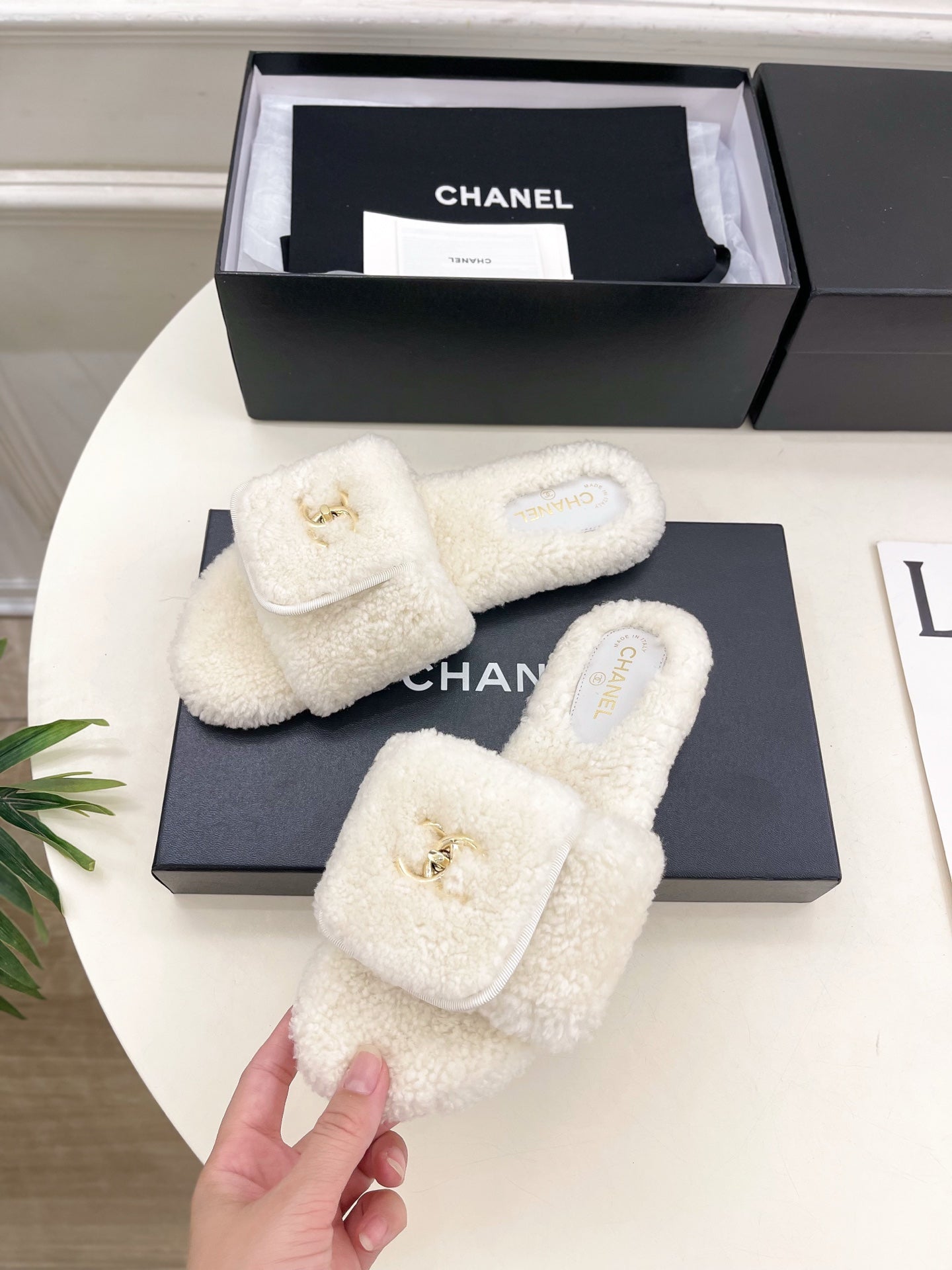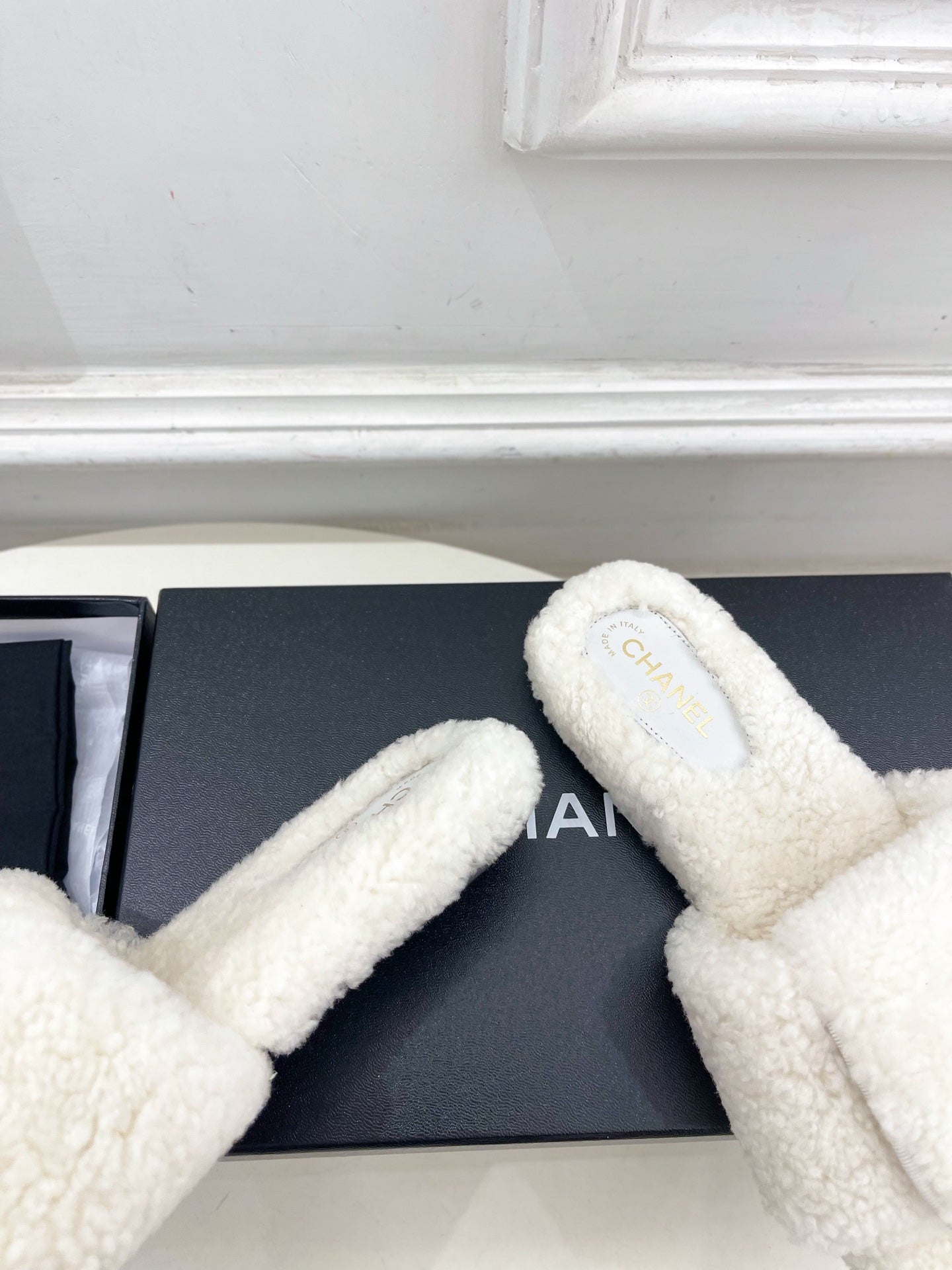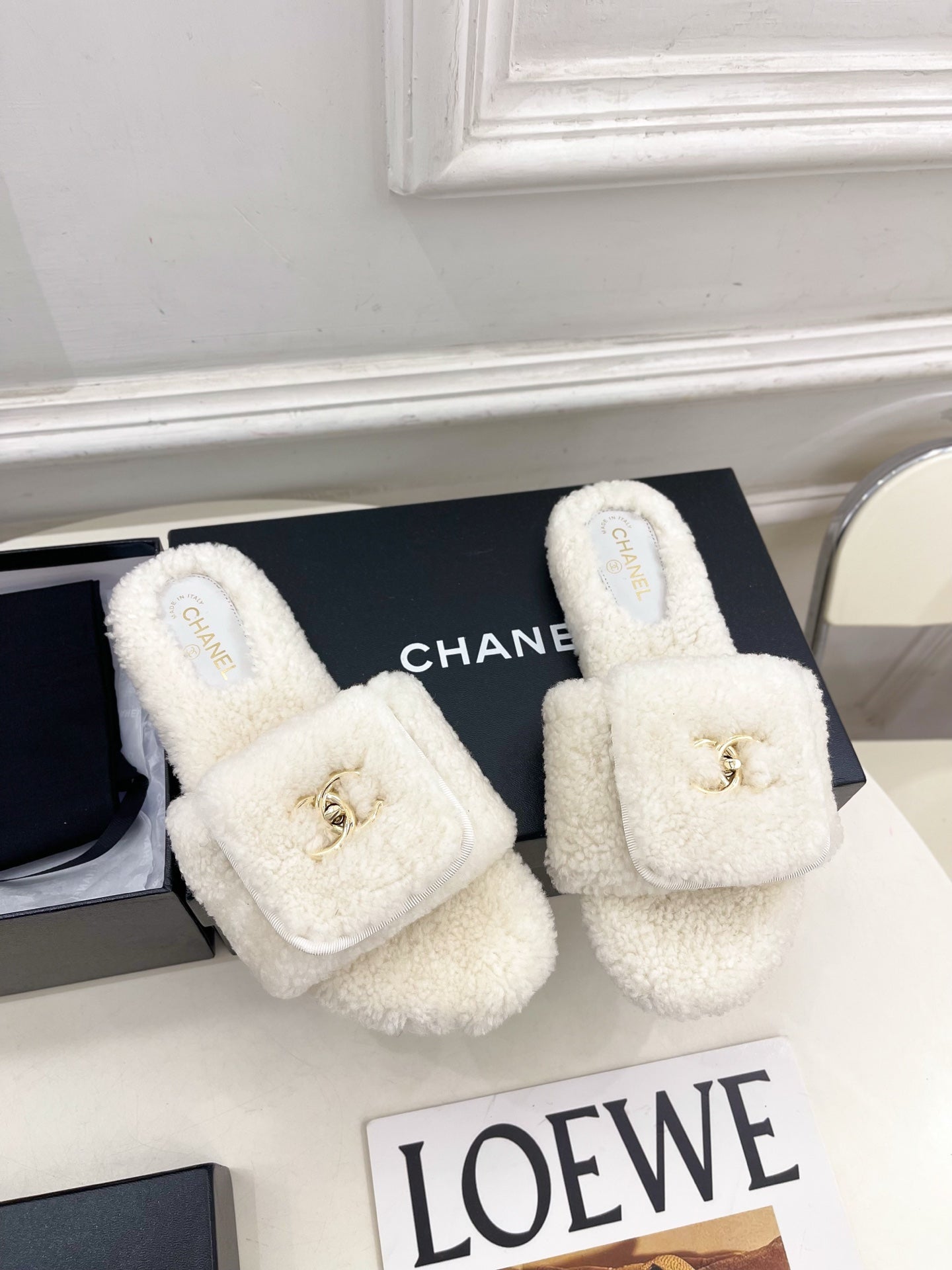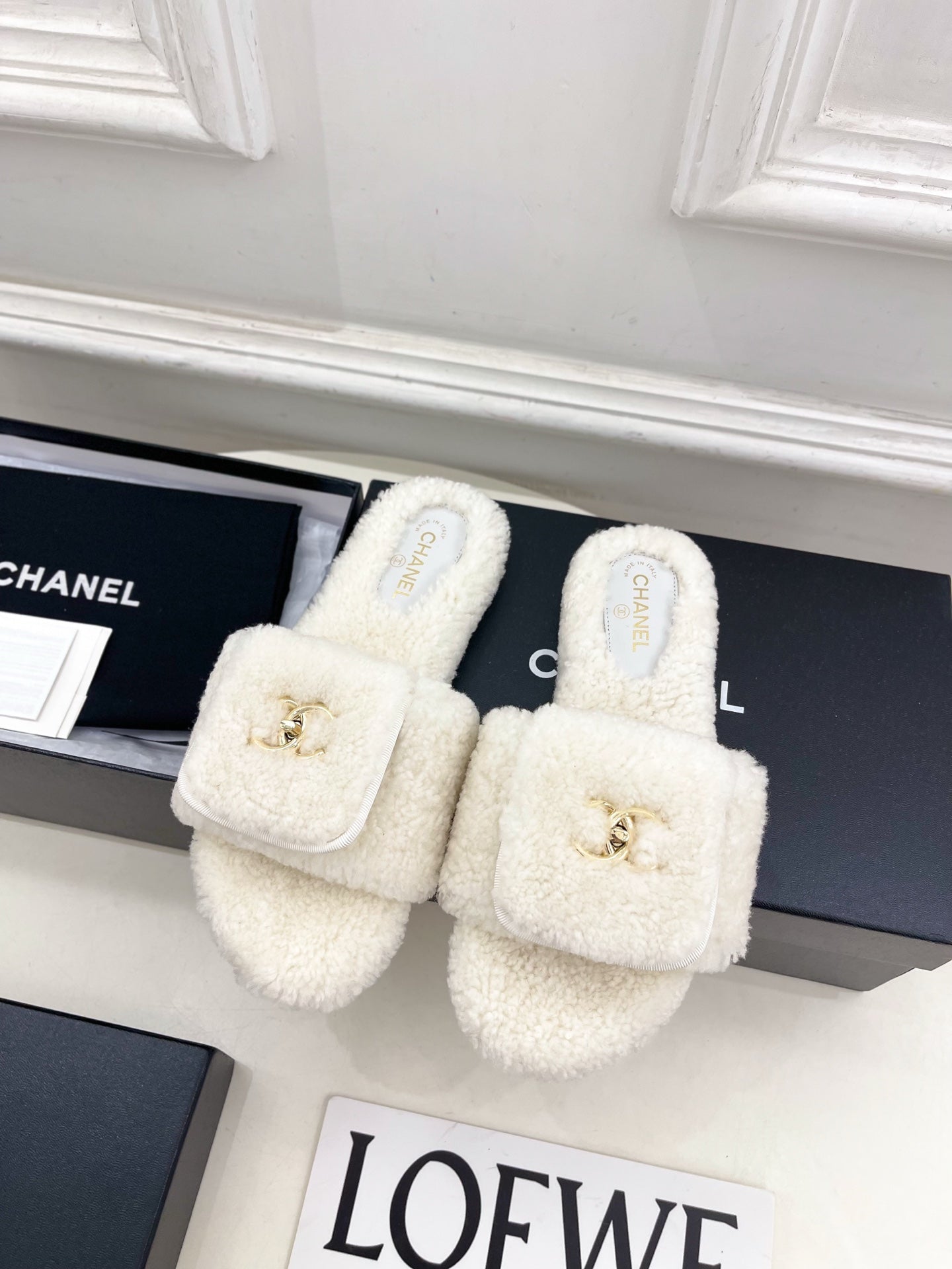 CC 25s Logo Slippers White Wool GHW 435266