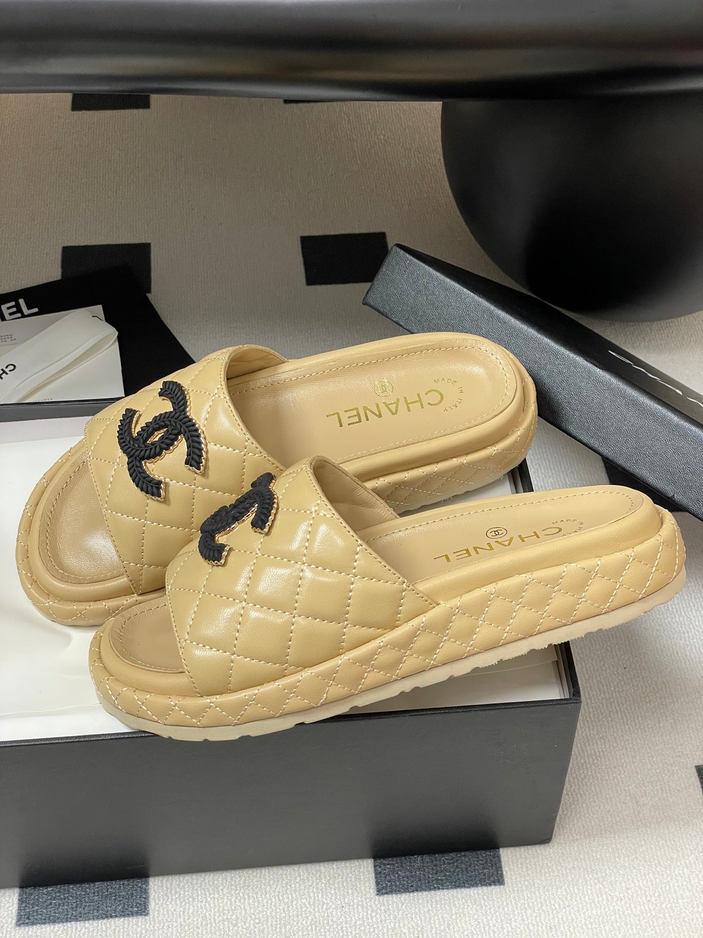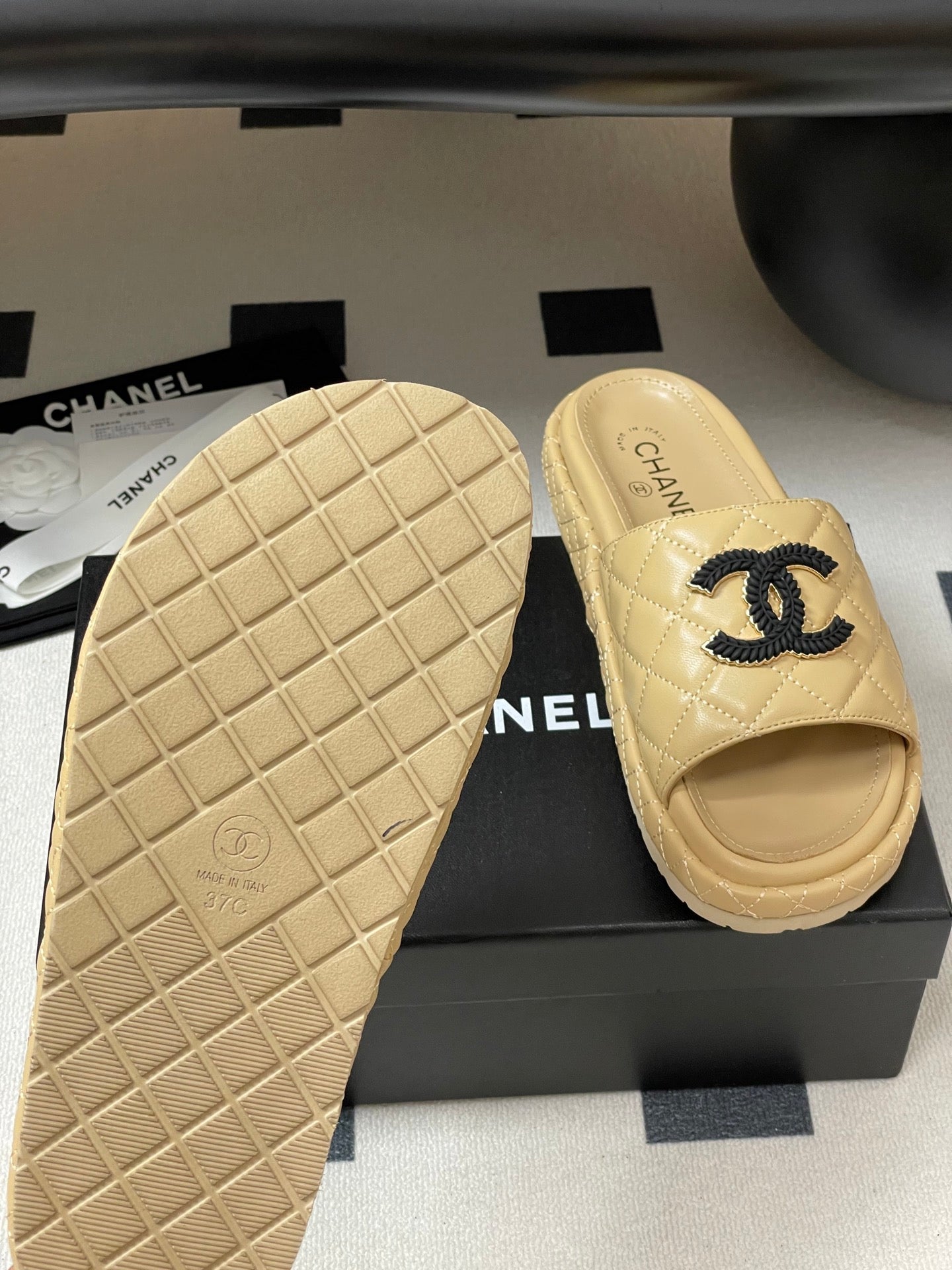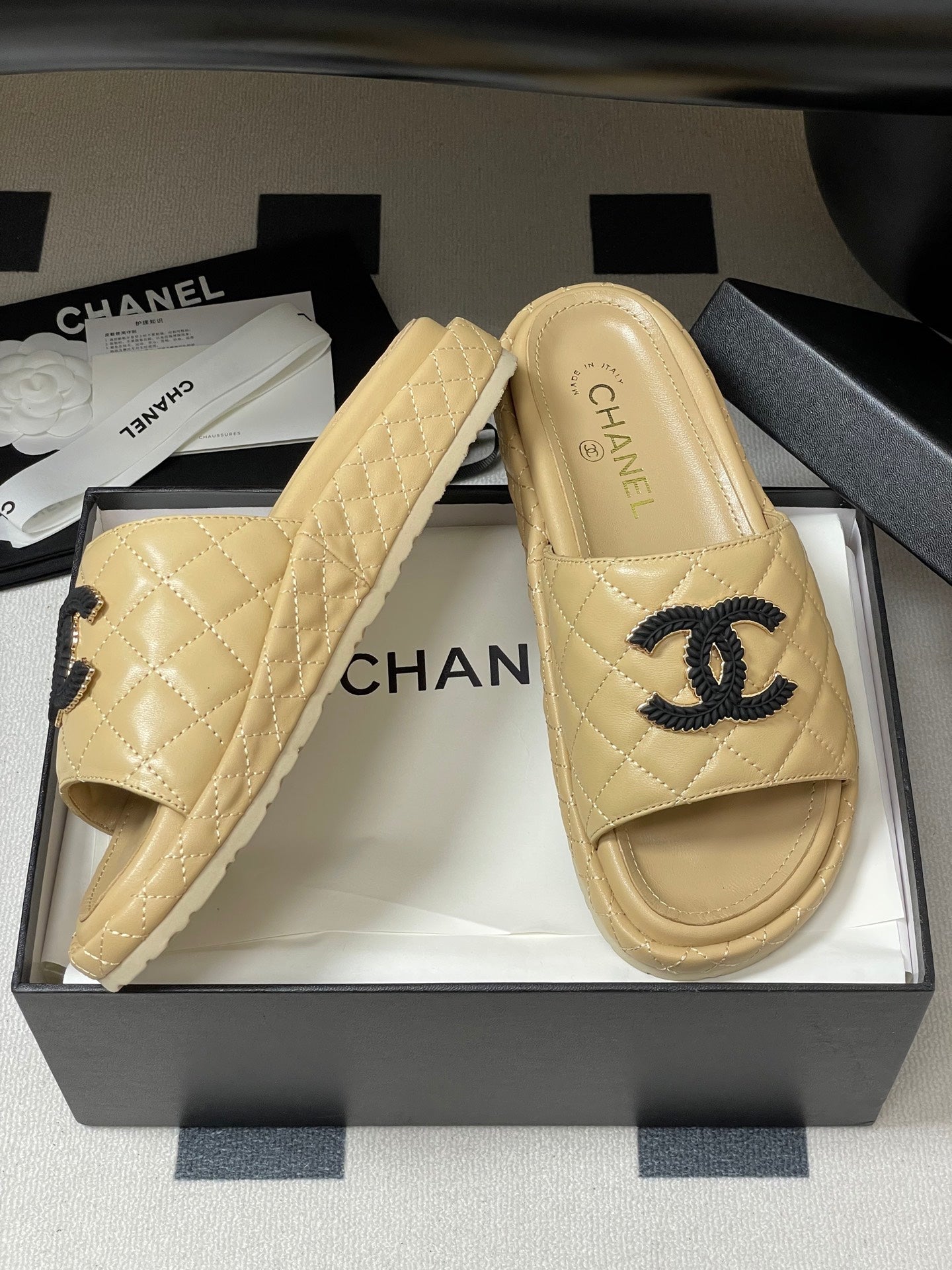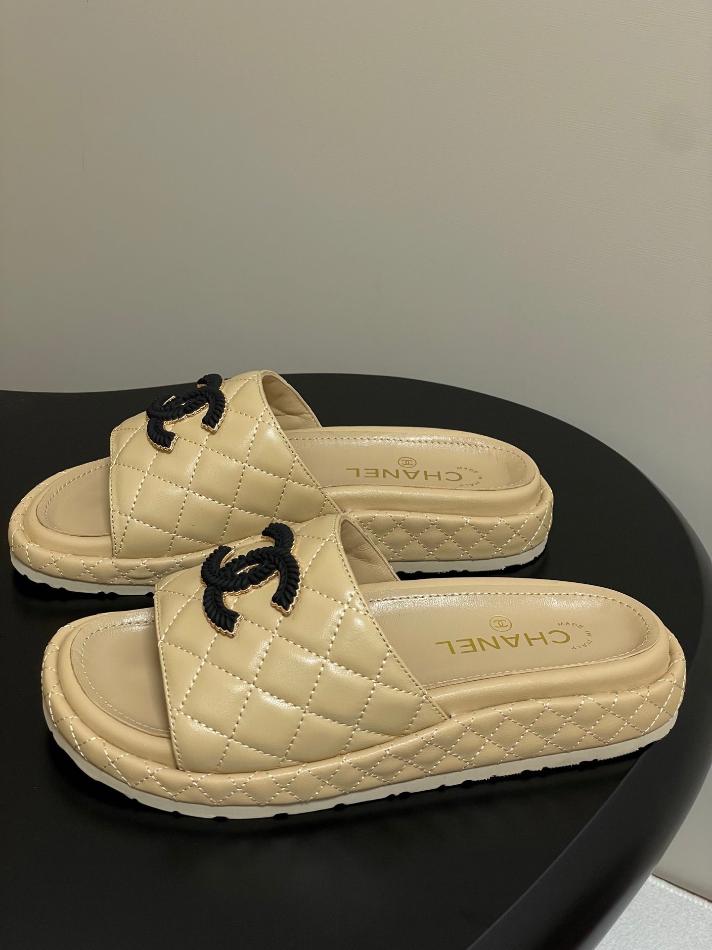 CC 25SS Double C Buckle Thick-soled Mule Sandals Beige Lambskin 319709