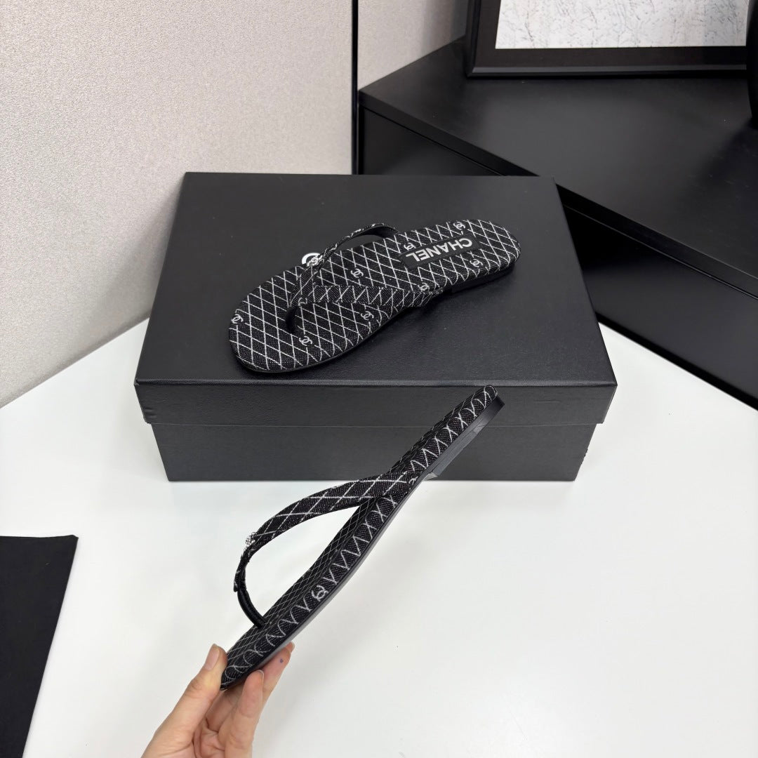CC Crystal Logo Thong Sandal Black Fabric And Sheepskin 352485