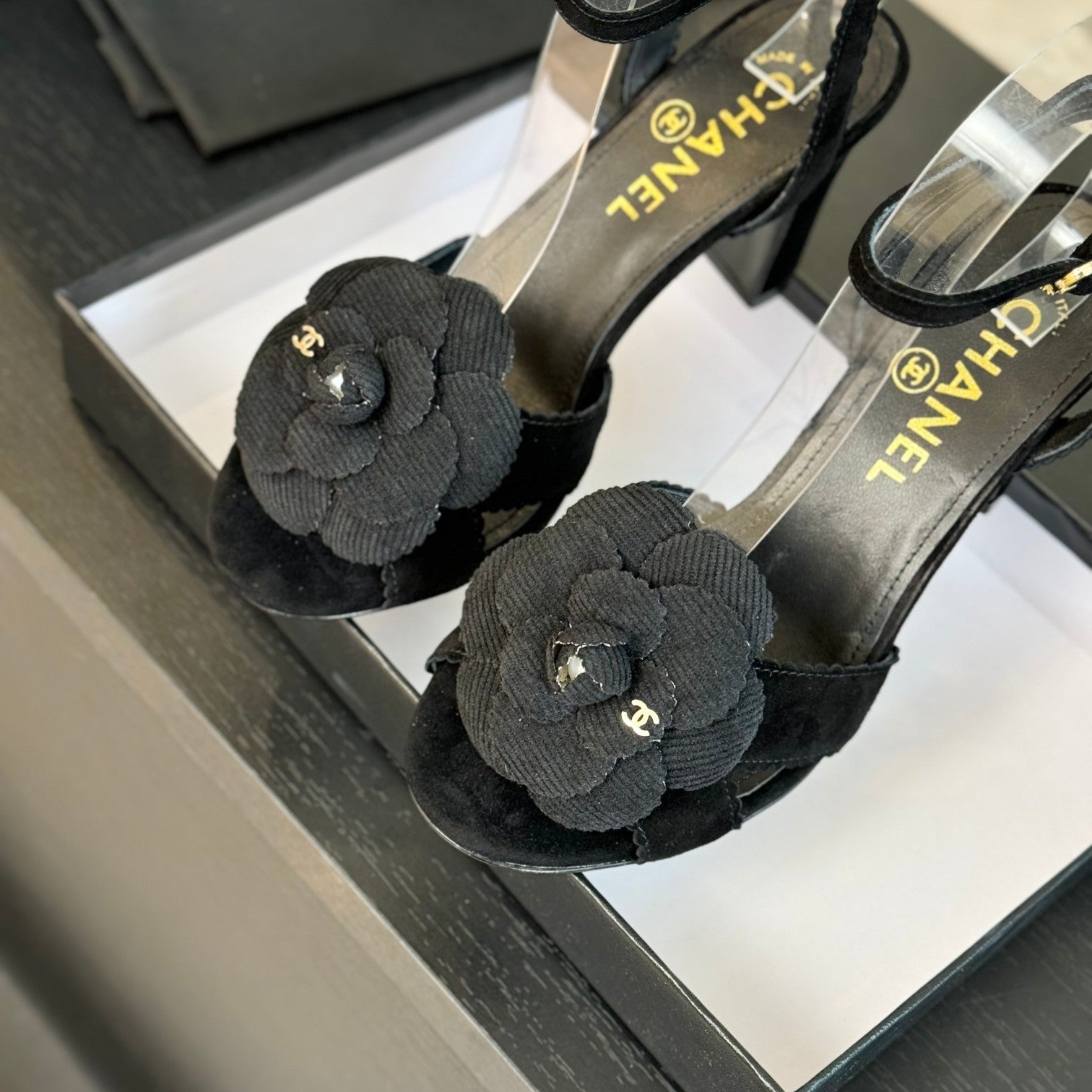 sandal flower high heel 80 black suede
