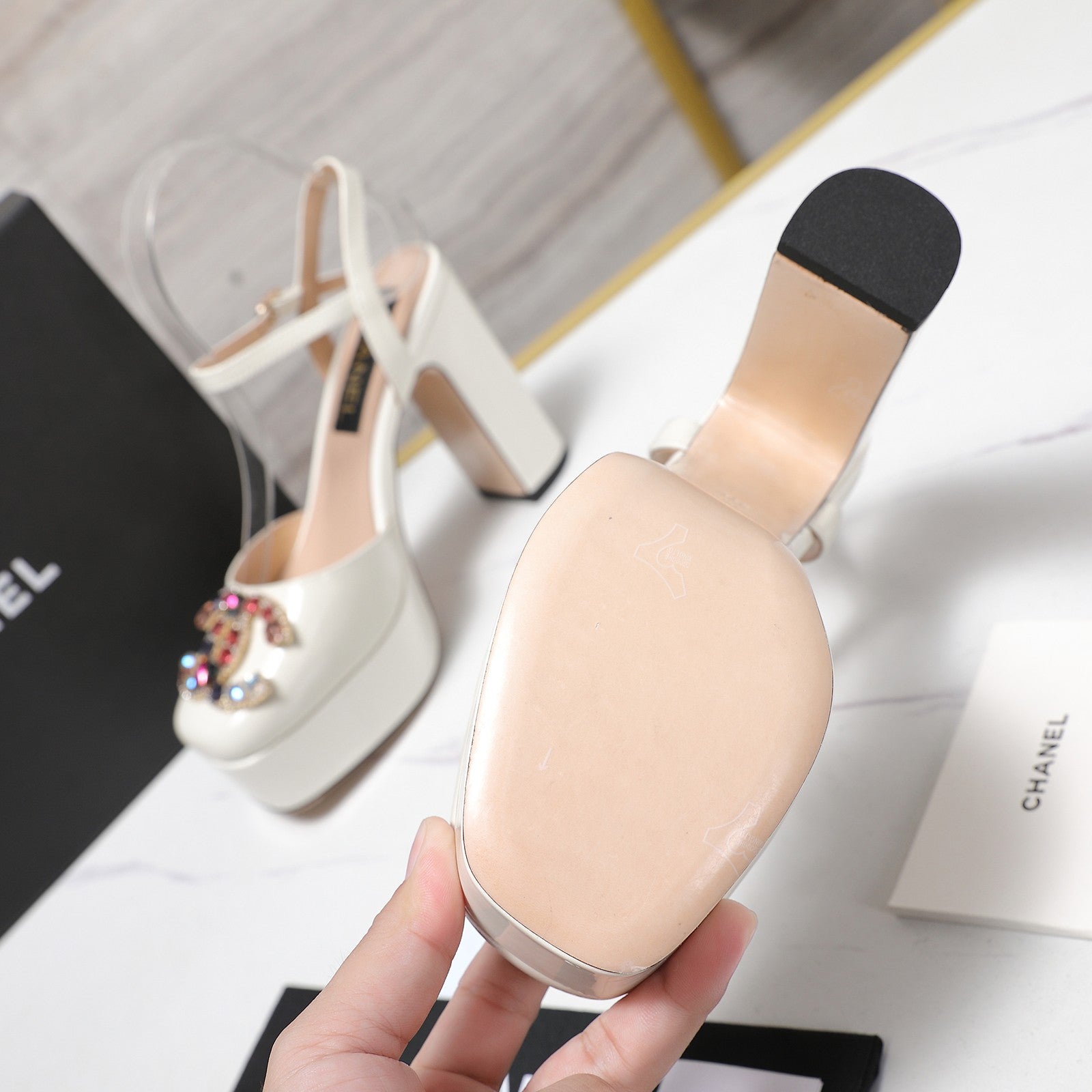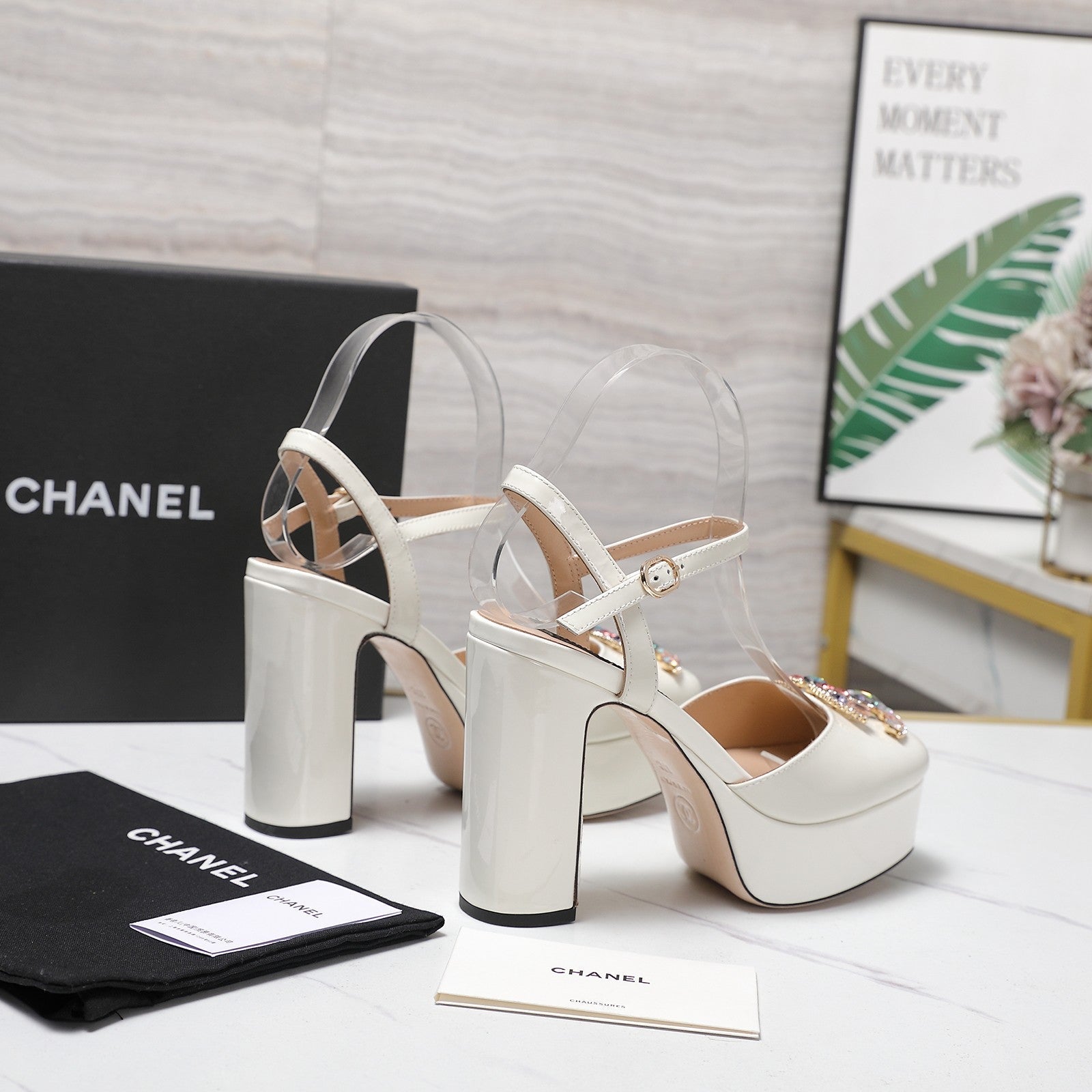 CC 25s Multicolor Stones Buckle Sandals 110mm White Patent Leather & Sheepskin 425825