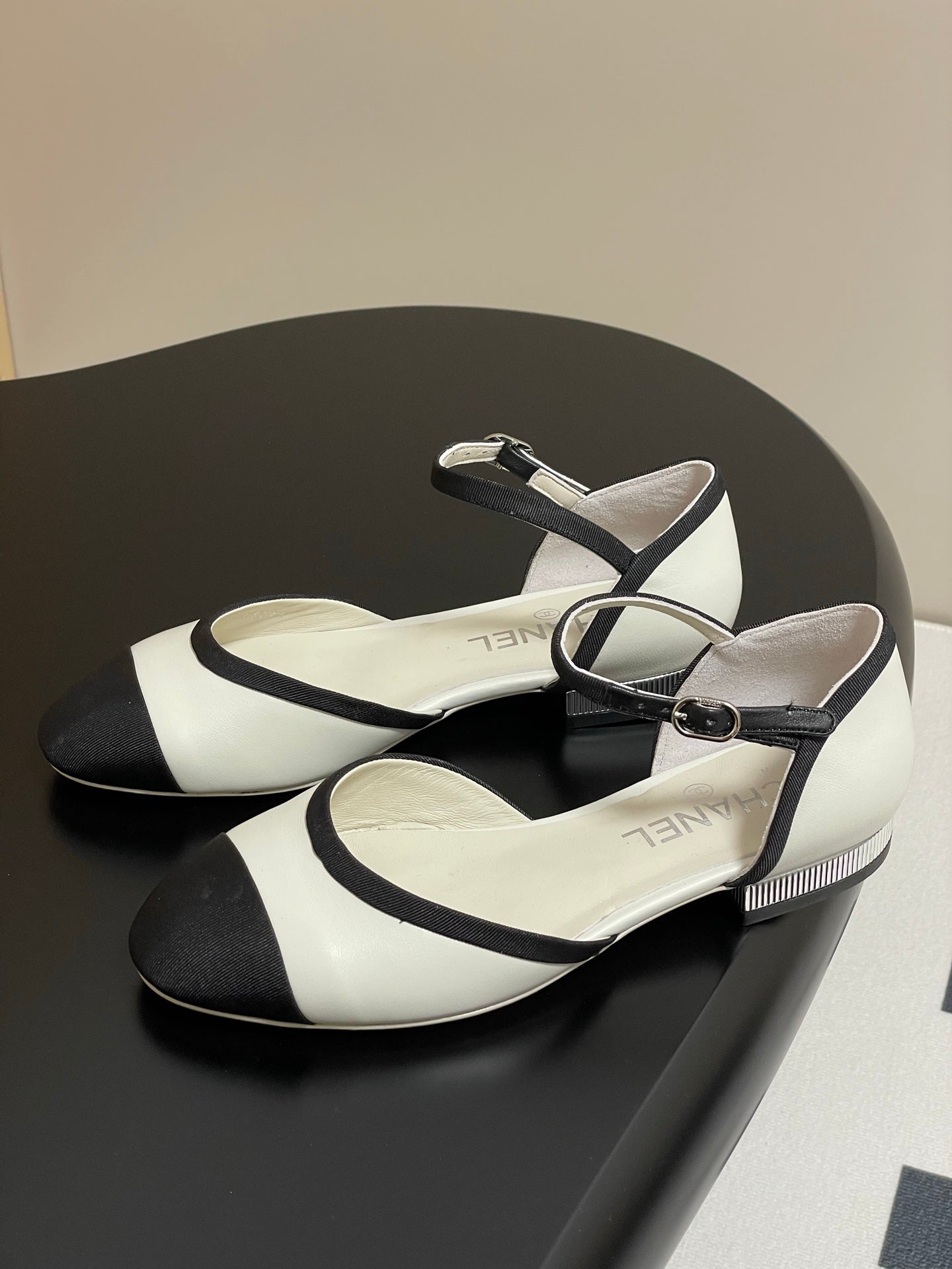 CC 25P Small Hollow Mary Jane White Sheepskin Black Grosgrain 247726