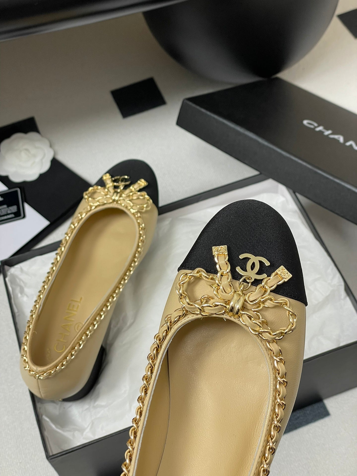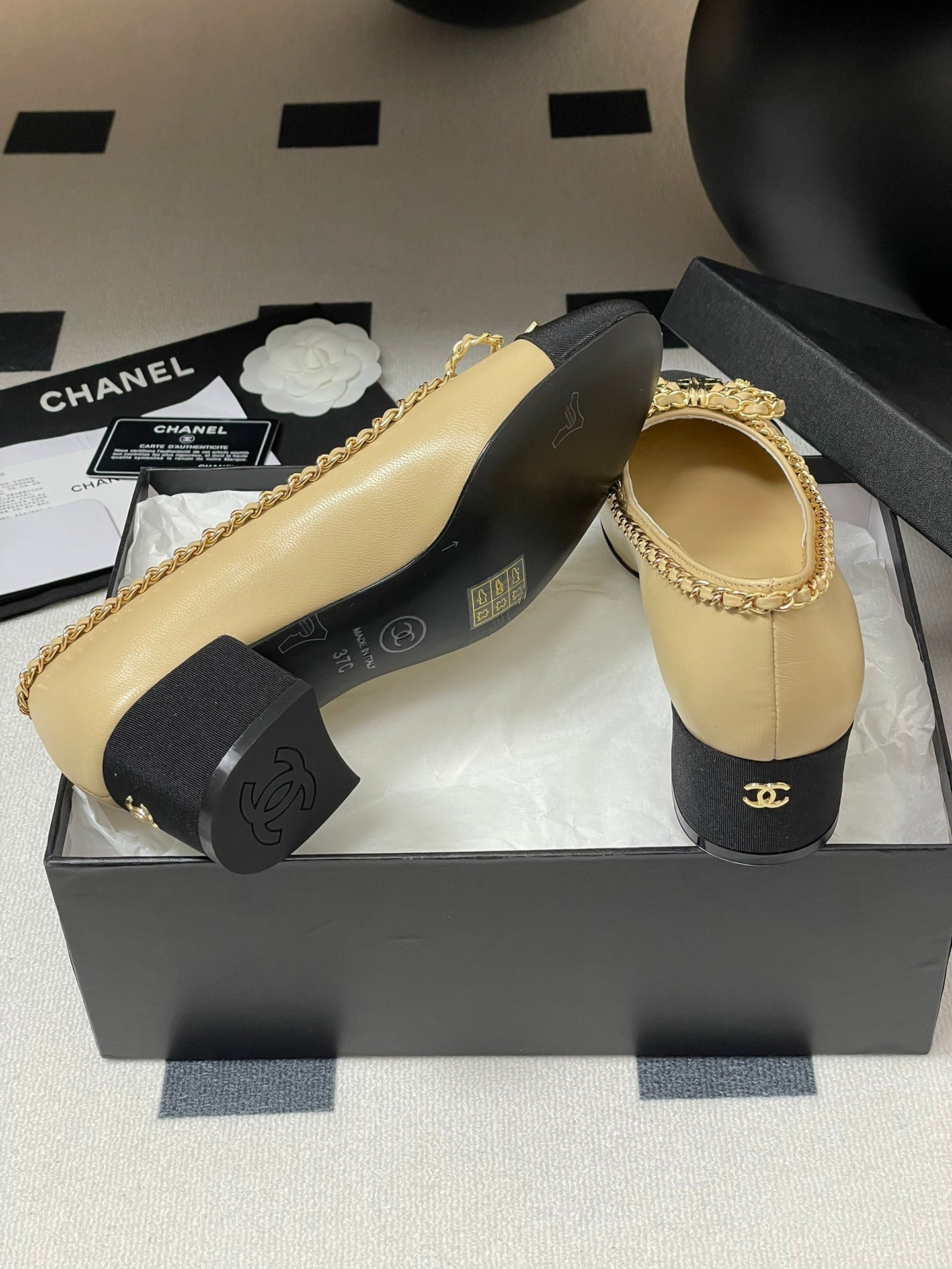 CC 25S 60mm Chain Bow Single Pumps Beige Sheepskin Black Grosgrain 247662