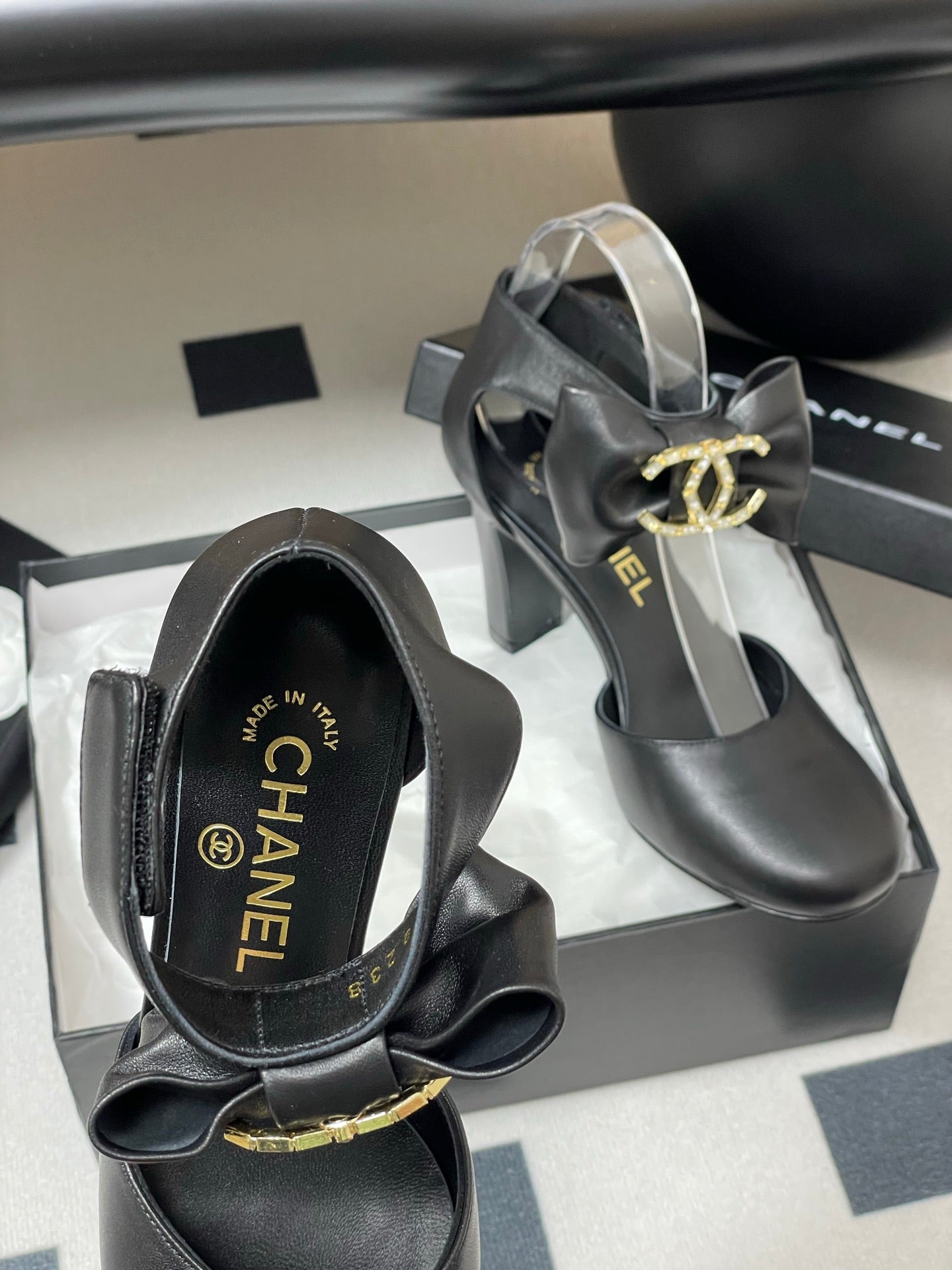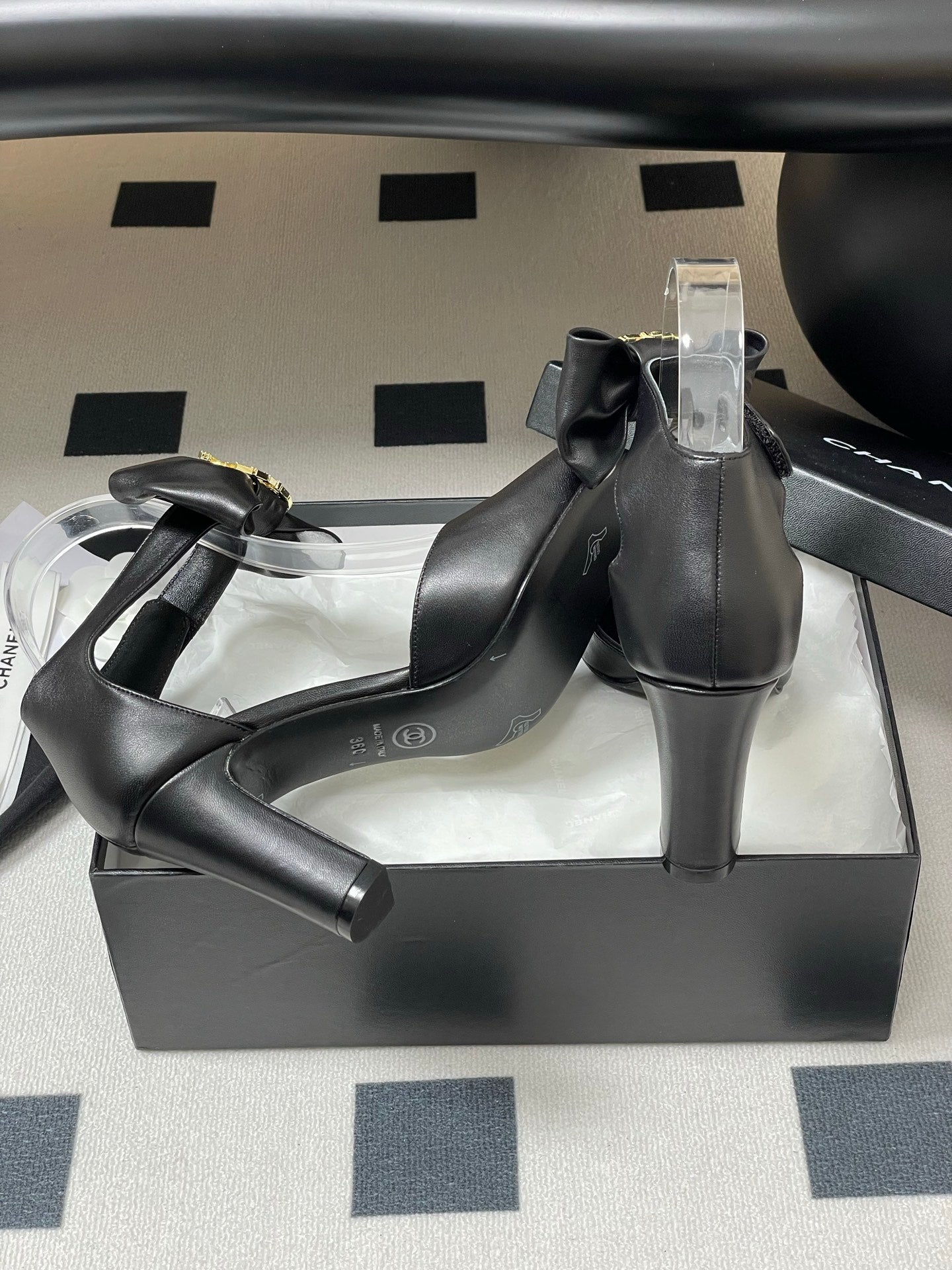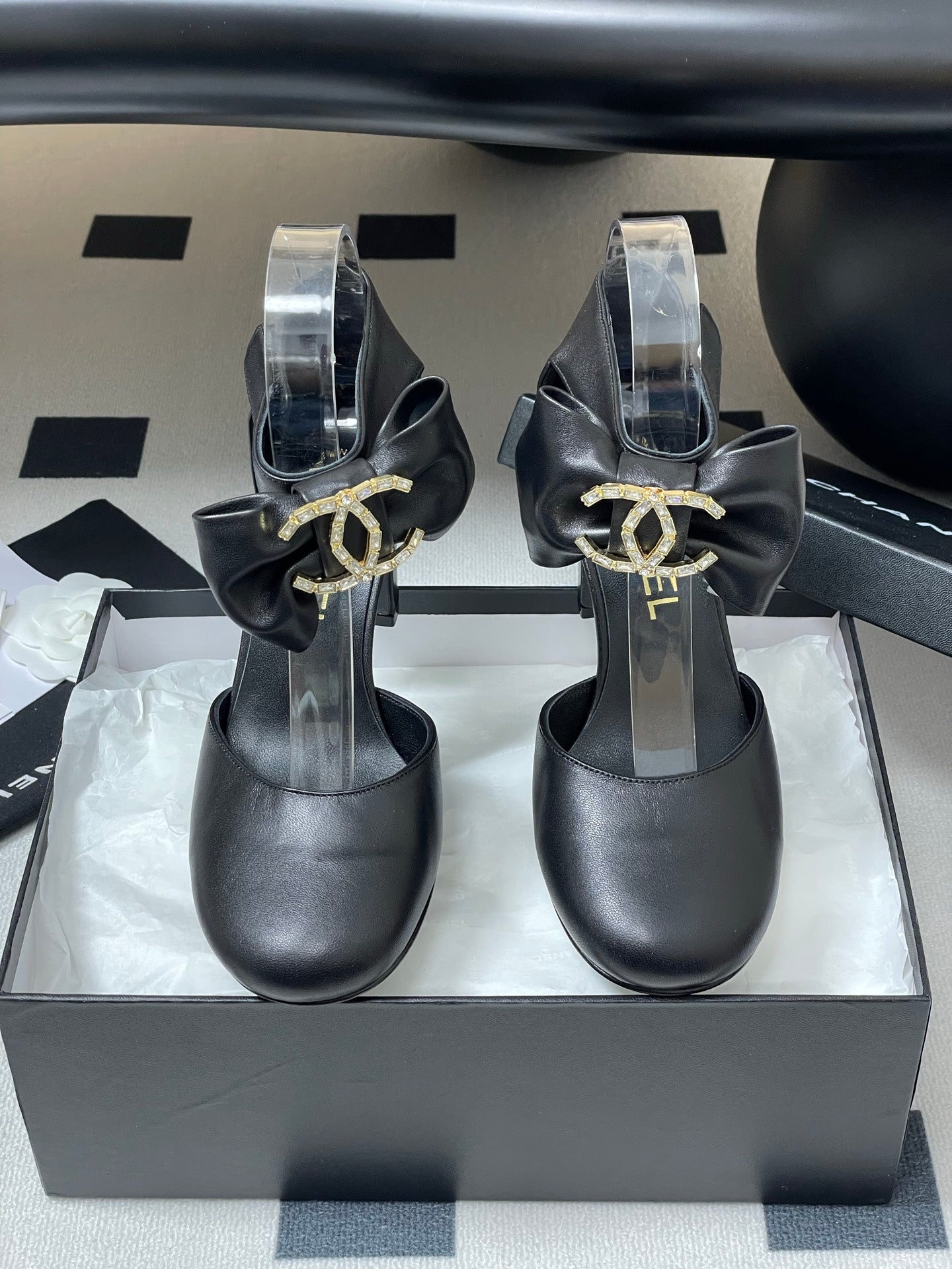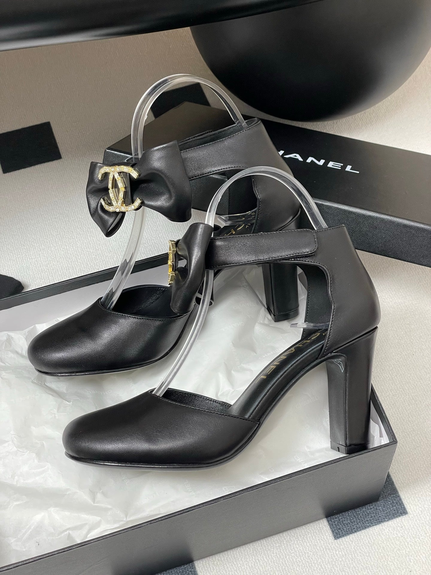 CC 25S Double C Rhinestone Buckle Bow High Heel Pump 85 Black Sheepskin 247573