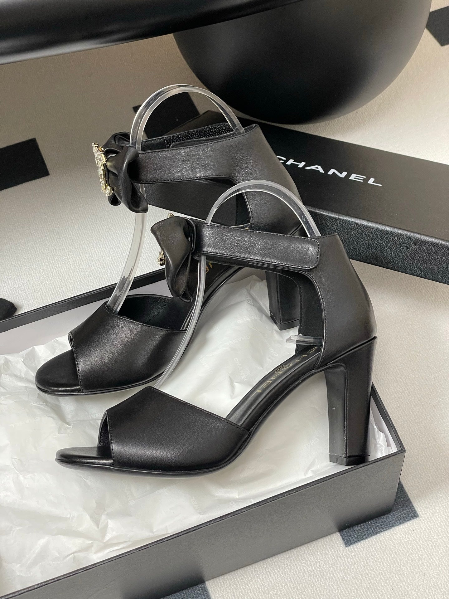 CC 25S Double C Rhinestone Buckle Bow High Heel Sandal 85 Black Sheepskin 247568