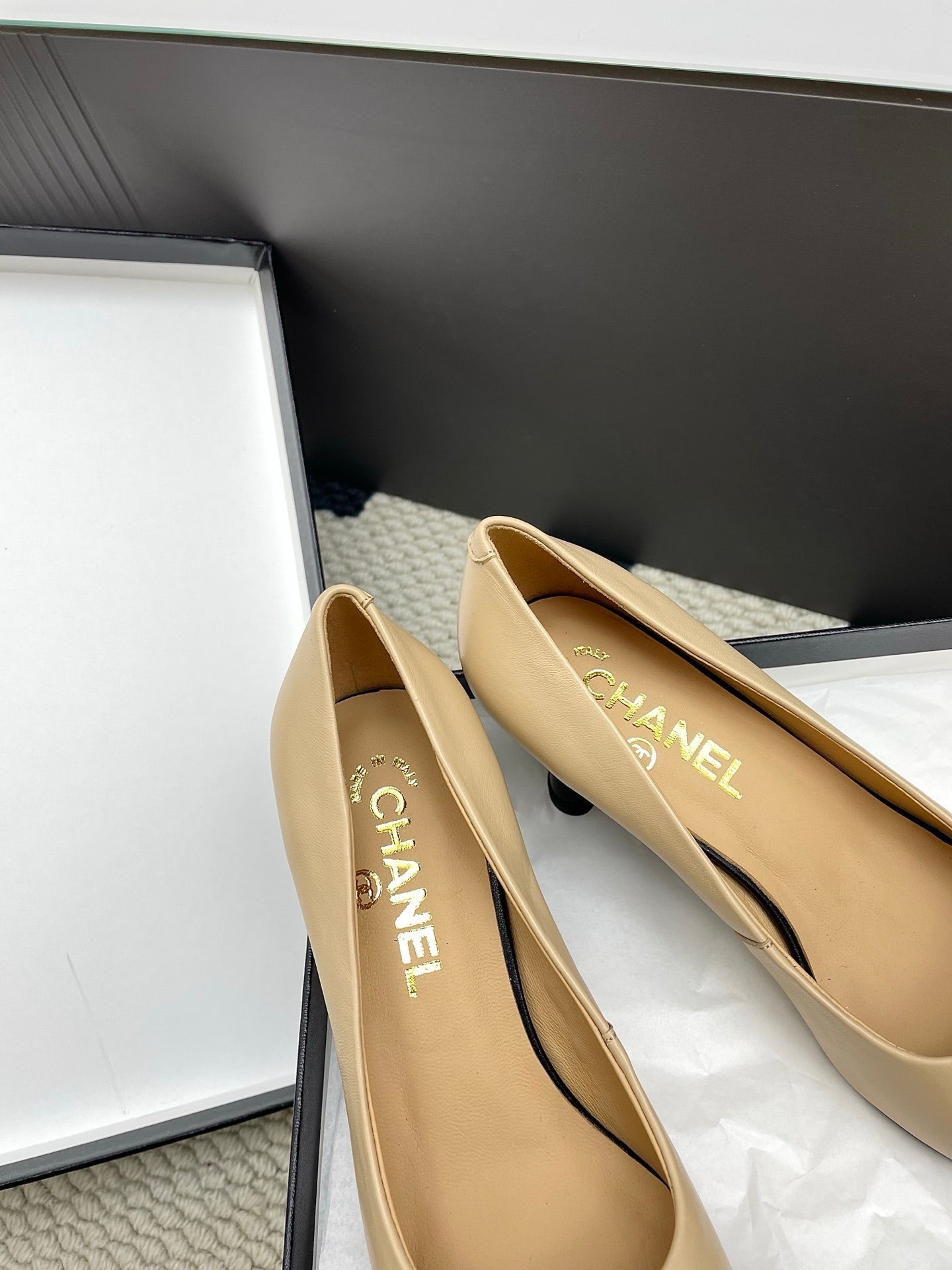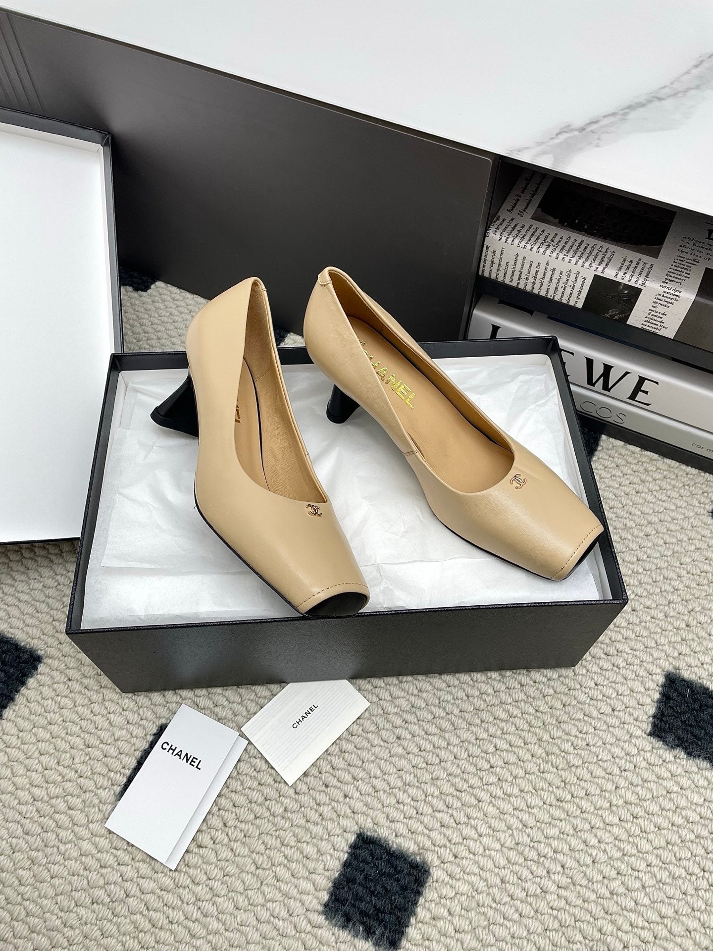 CC Square-Toe Pumps 65mm Beige Sheepskin 427014