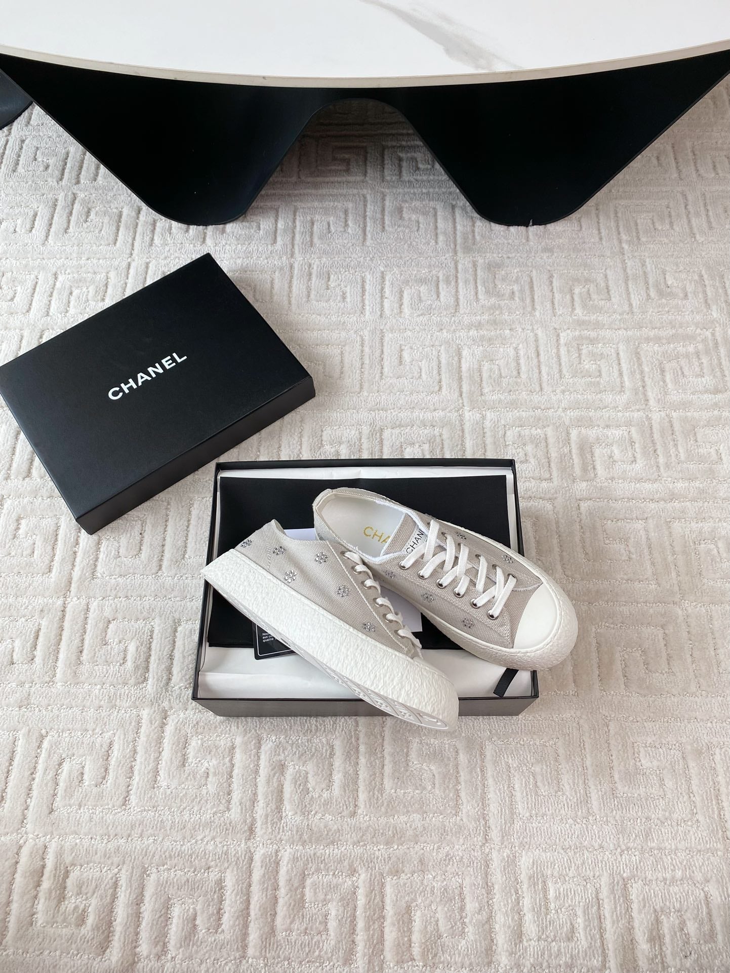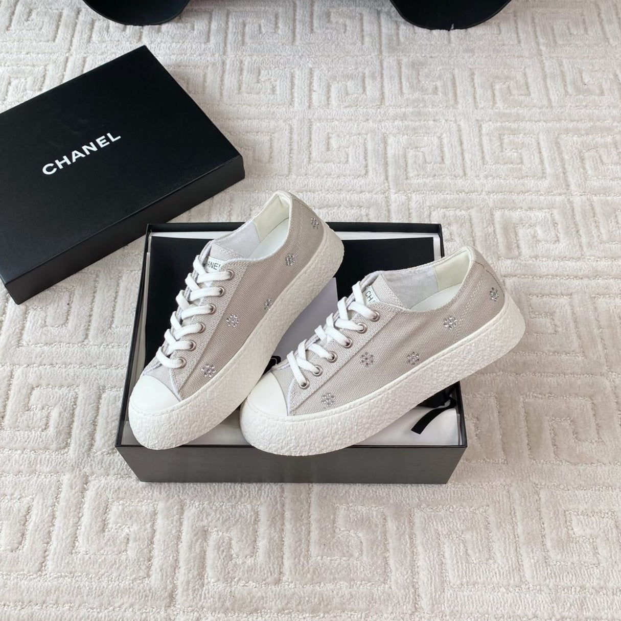 CC Low Sneaker 35mm White Grey Textile Fabric And Lambskin