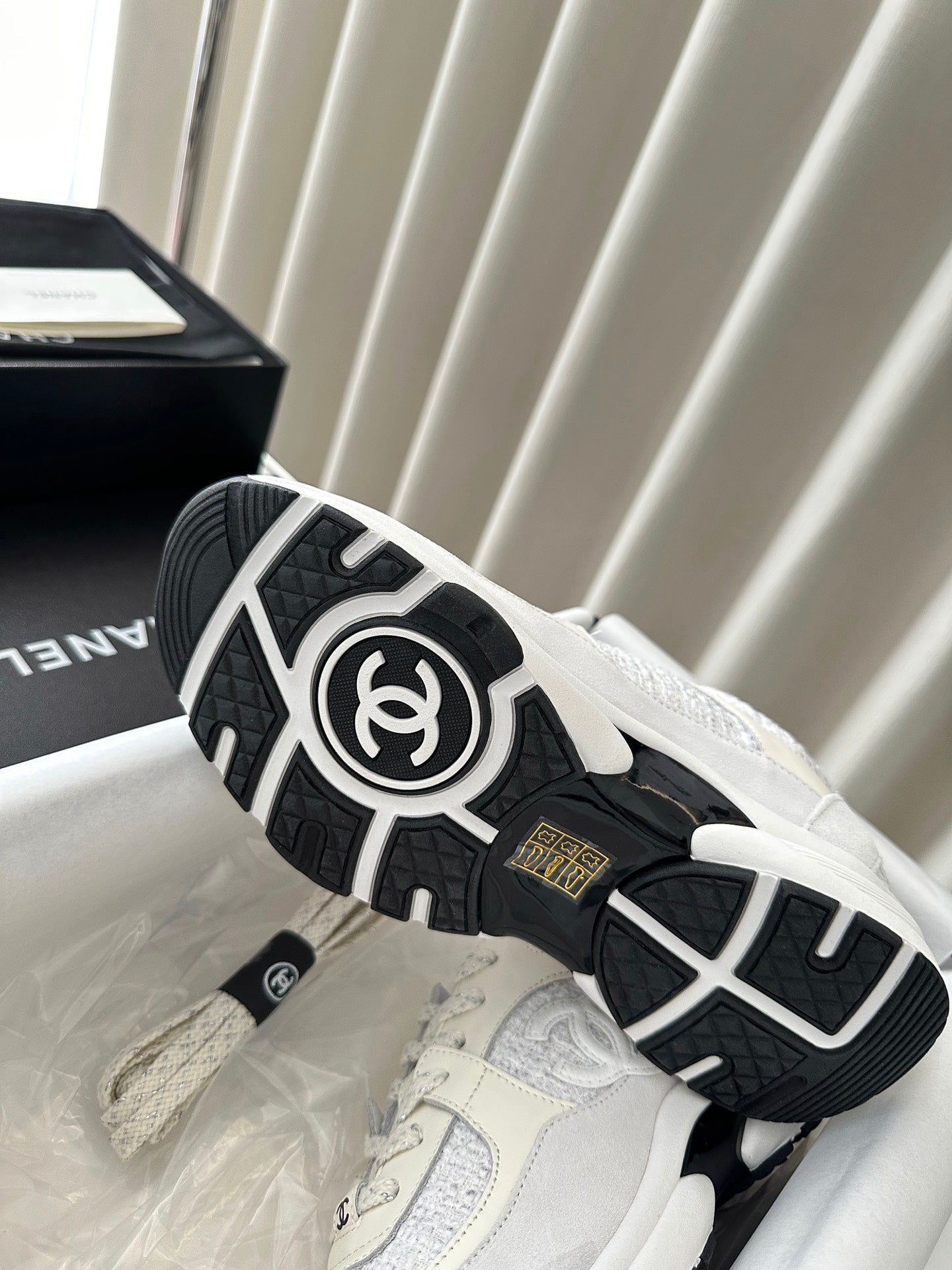 cc sneaker white tweed dark cream calfskin