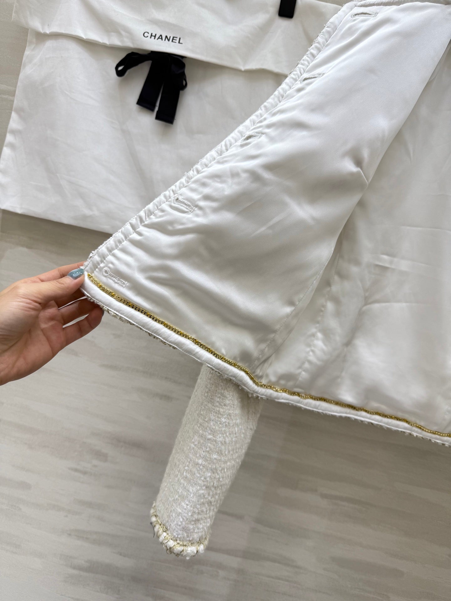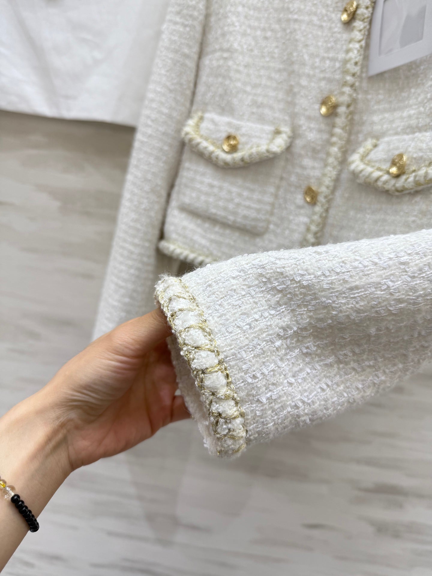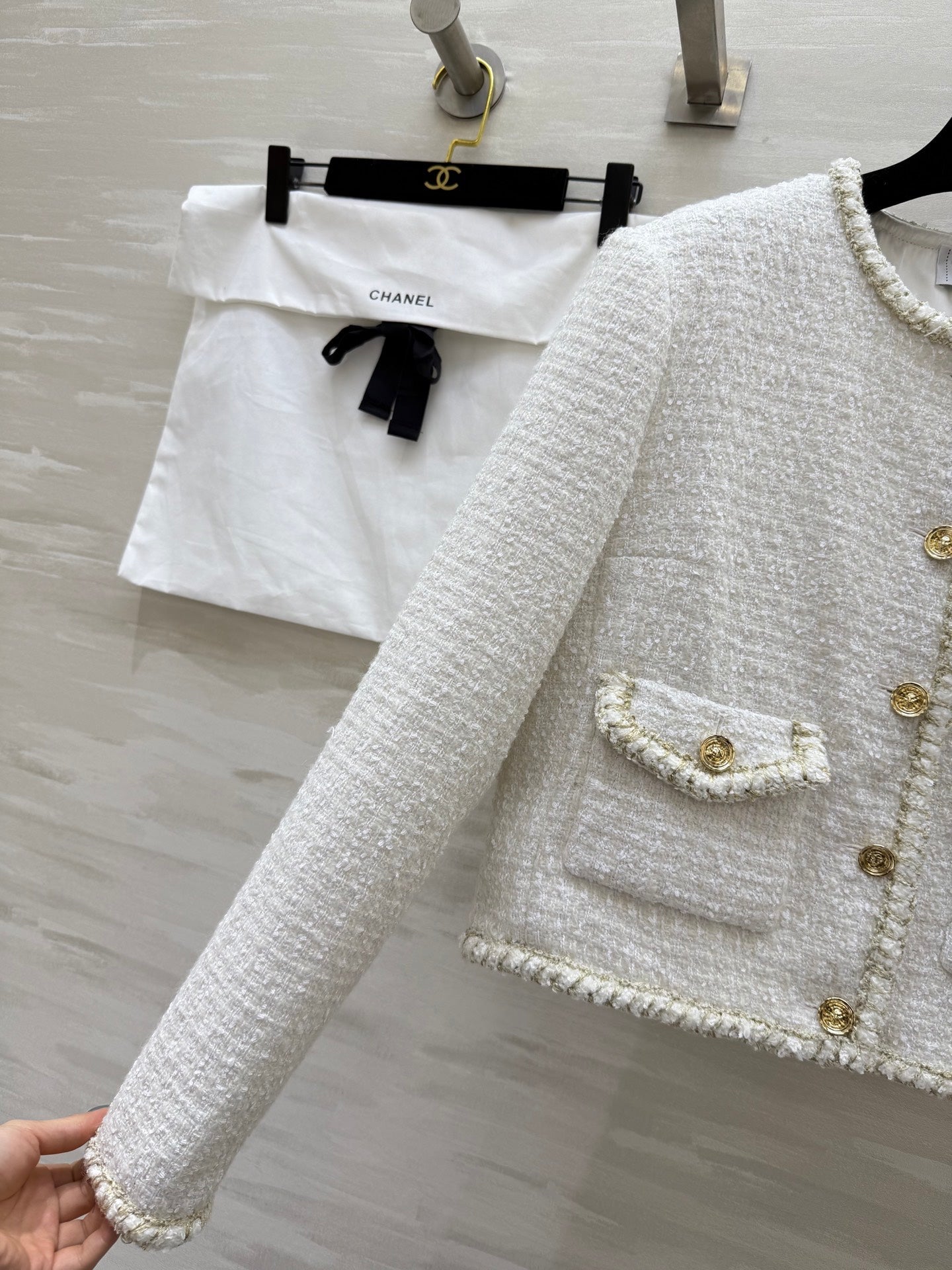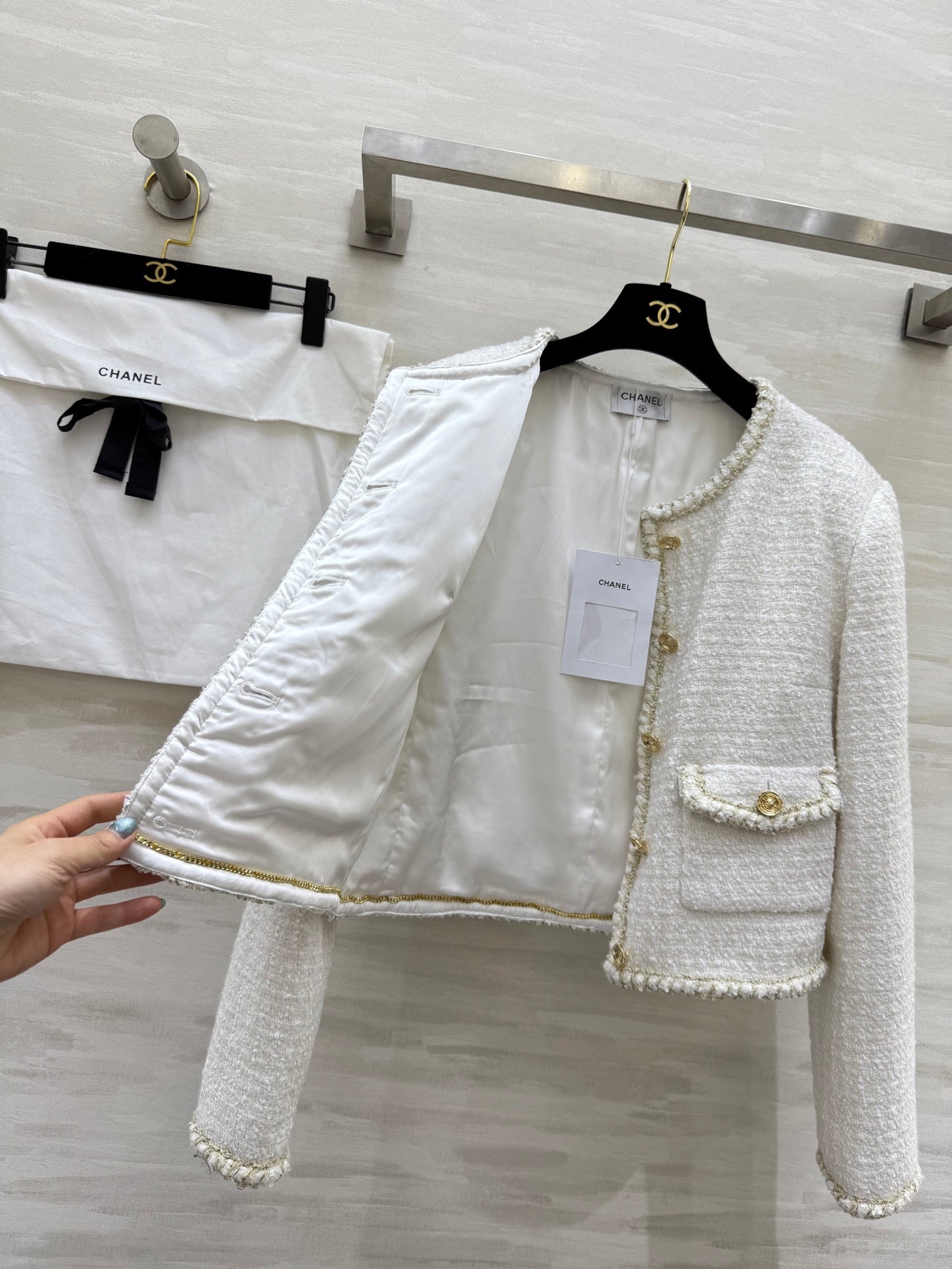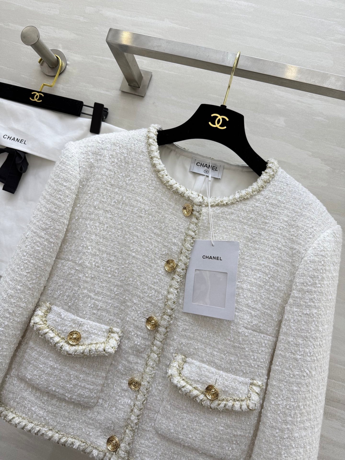 CC 25A Classic Round Neckline Short Jacket White Tweed