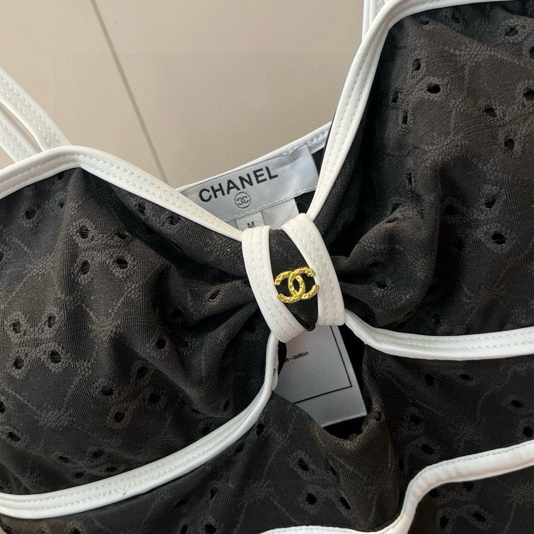 CC BIKINI SWIMSUIT SET IN BLACK AND WHITE TRIM 594785