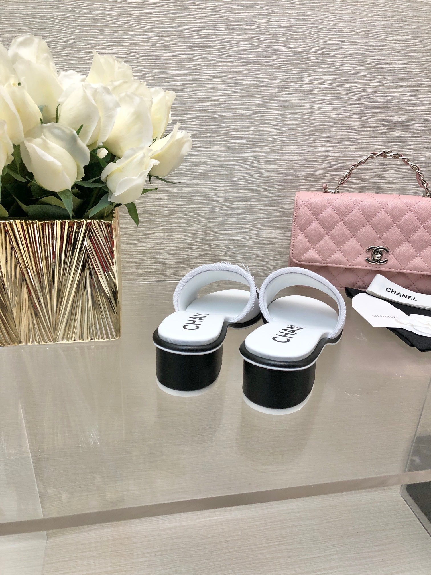 CC 25C Mid Heel Mule White Fabric Material 212959
