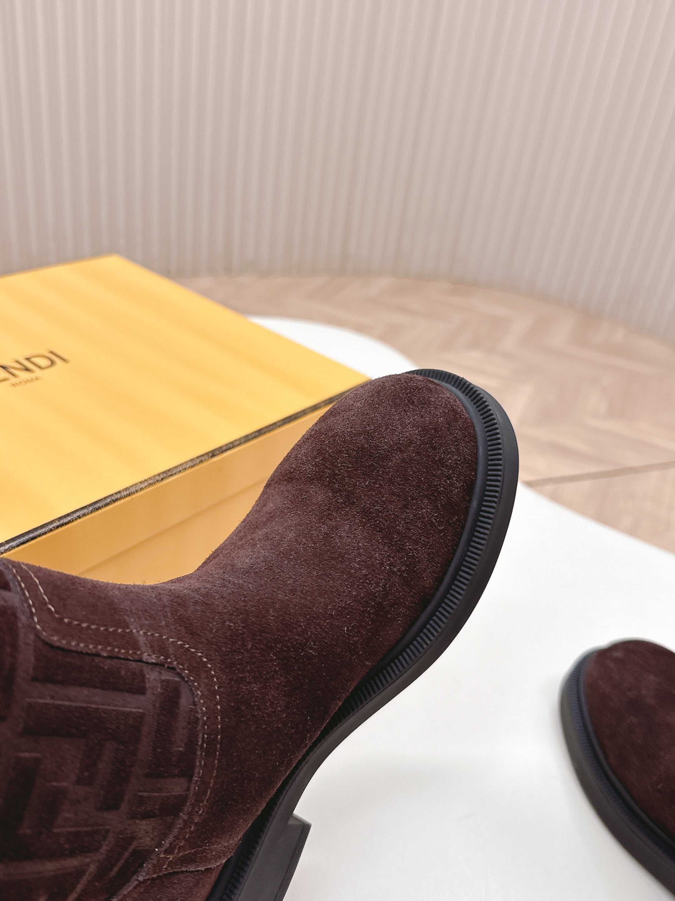 Fendi 25 Short Boots Deep Chocolate Brown Suede 500933