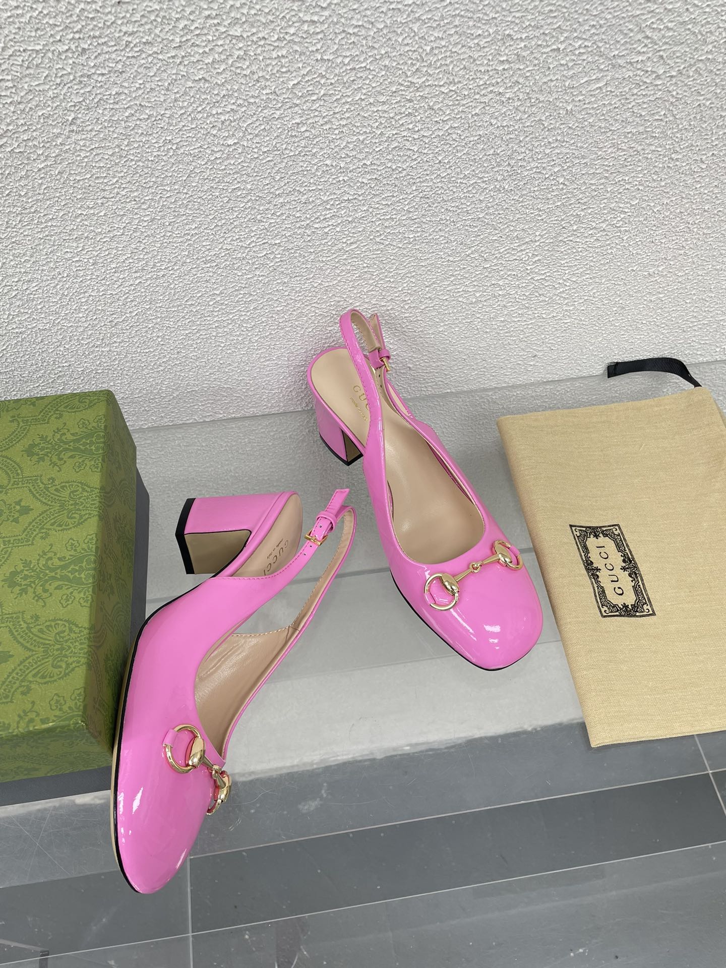 GG WOMEN'S HORSEBIT SLINGBACK 65MM IN FUSICA PINK CALFSKIN