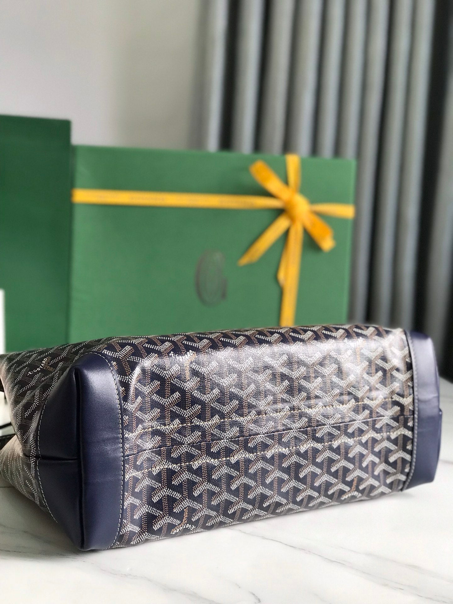 BELLECHASSE BIAUDE PM BAG 36 IN NAVY BLUE GOYARDINE CANVAS AND CALFSKIN TRIM