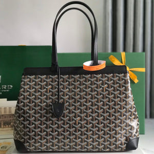 CHIEN GRIS BAG 33 IN BLACK GOYARDINE CANVAS AND TAN CALFSKIN TRIM
