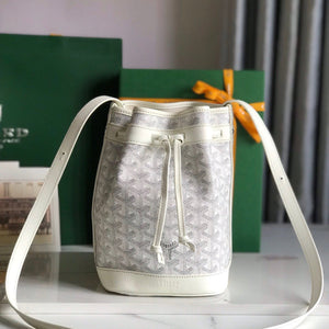 PETIT FLOT BUCKET BAG 22 IN WHITE GOYARDINE CANVAS AND LAMBSKIN TRIM