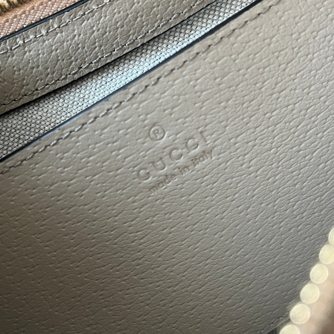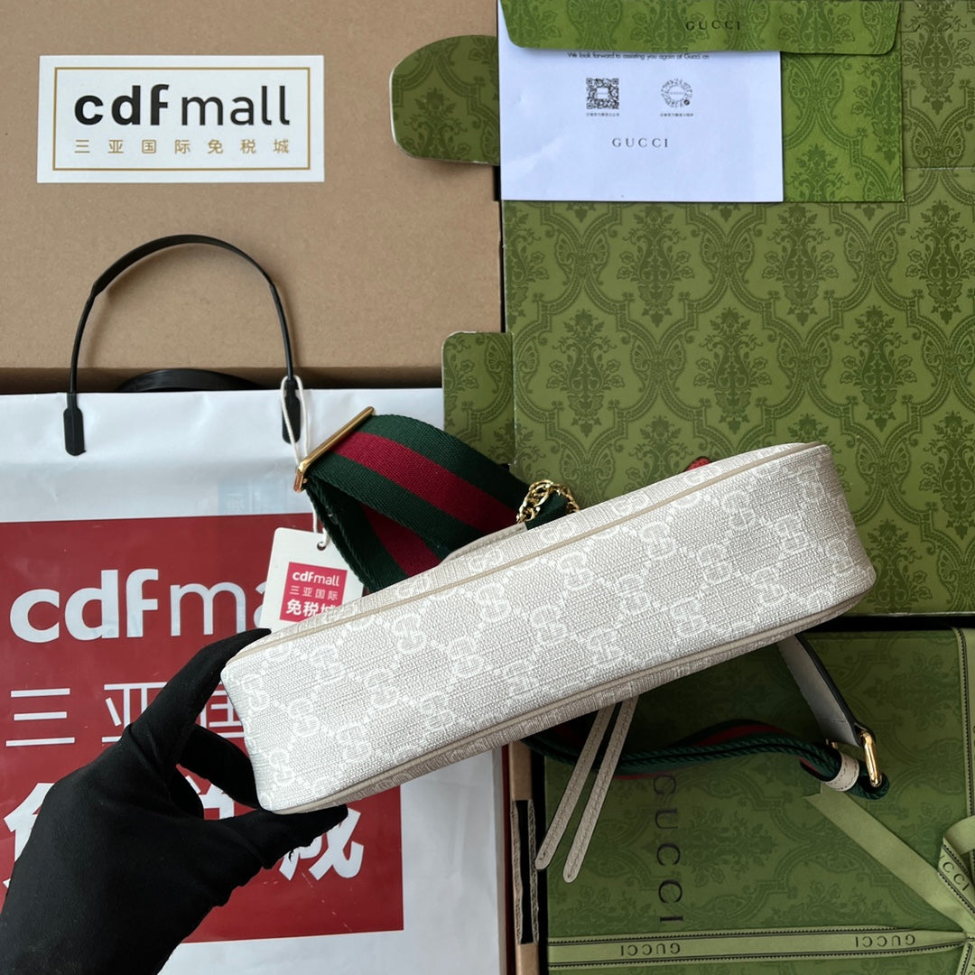 OPHIDIA SMALL SHOULDER BAG 25 IN WHITE CANVAS AND OAT LAMBSKIN GOLD HARDWARE