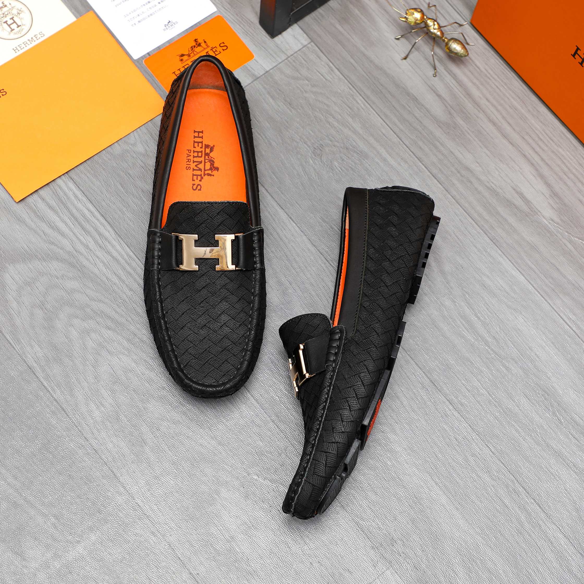 HM H-BUCKLE LOAFER BLACK EMBOSSED LAMBSKIN