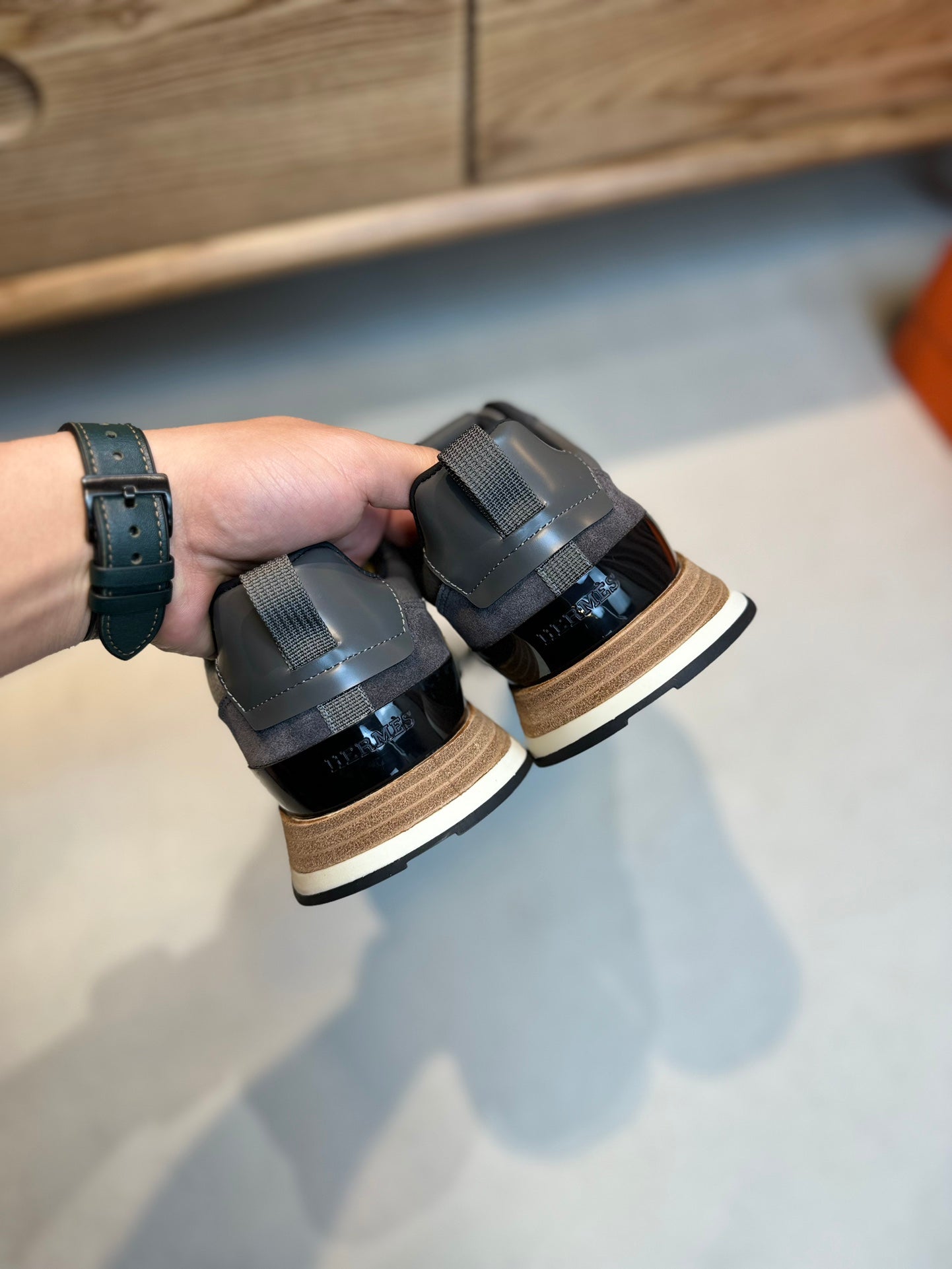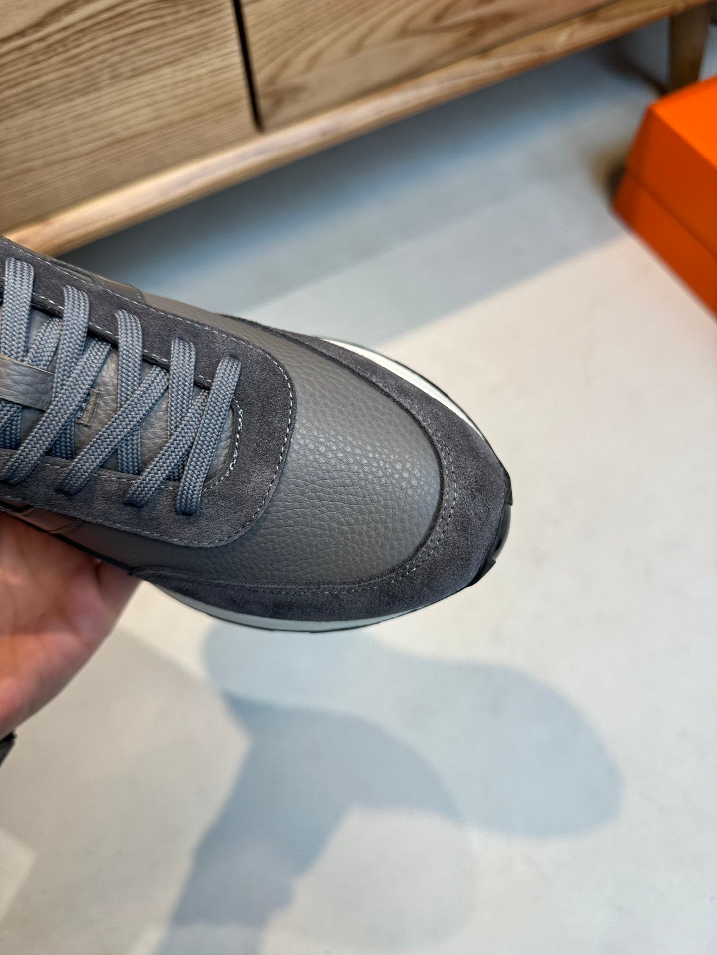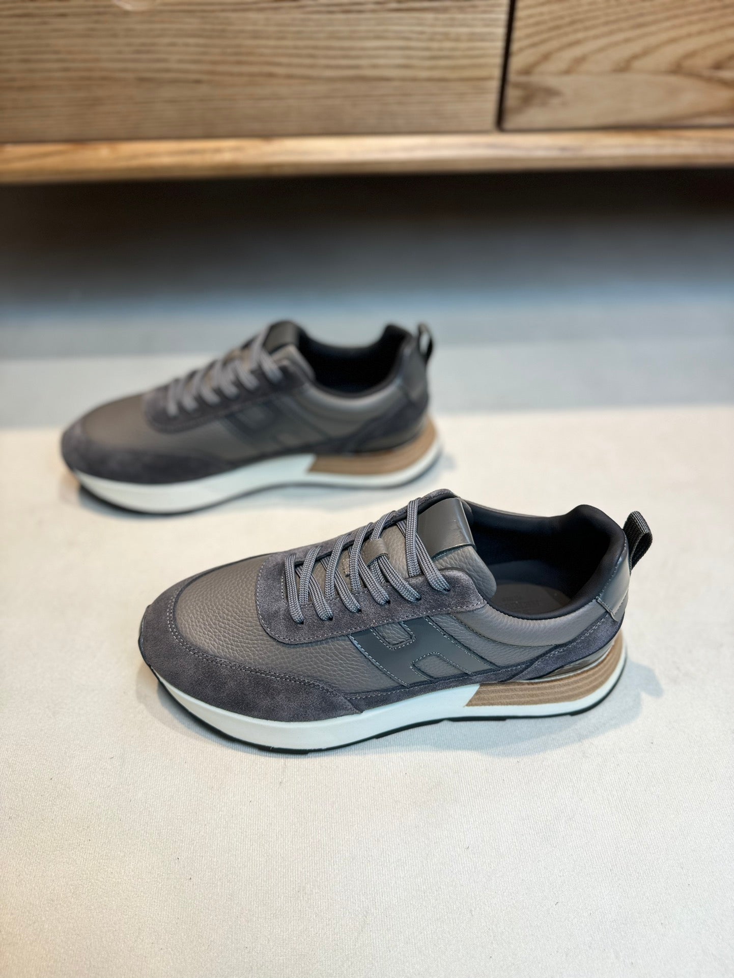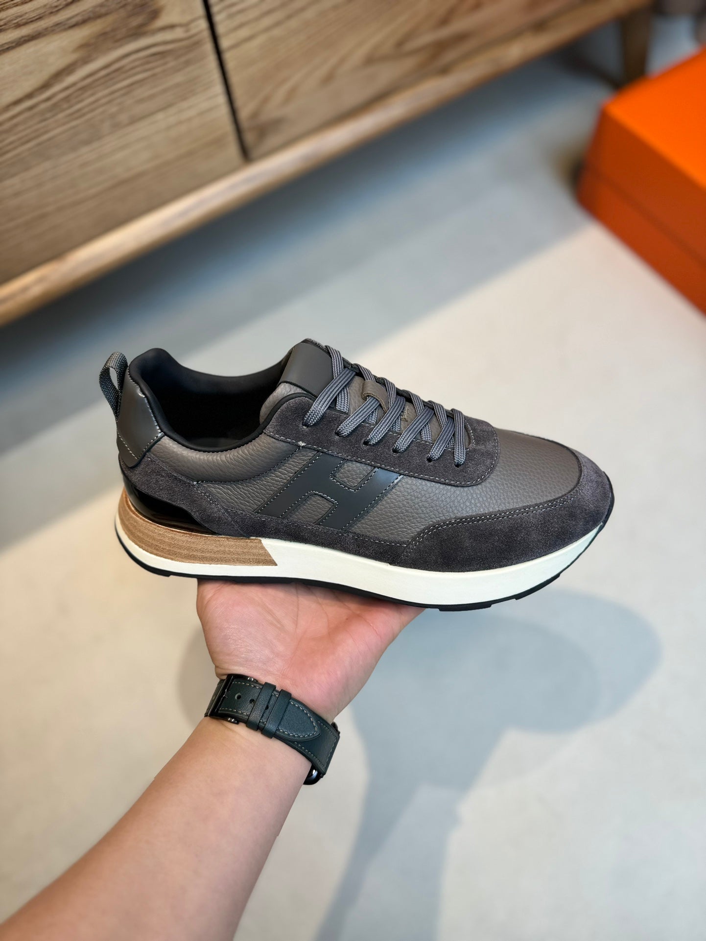 HM INTERACTIVE LACE-UP SNEAKER GRAY CALFSKIN