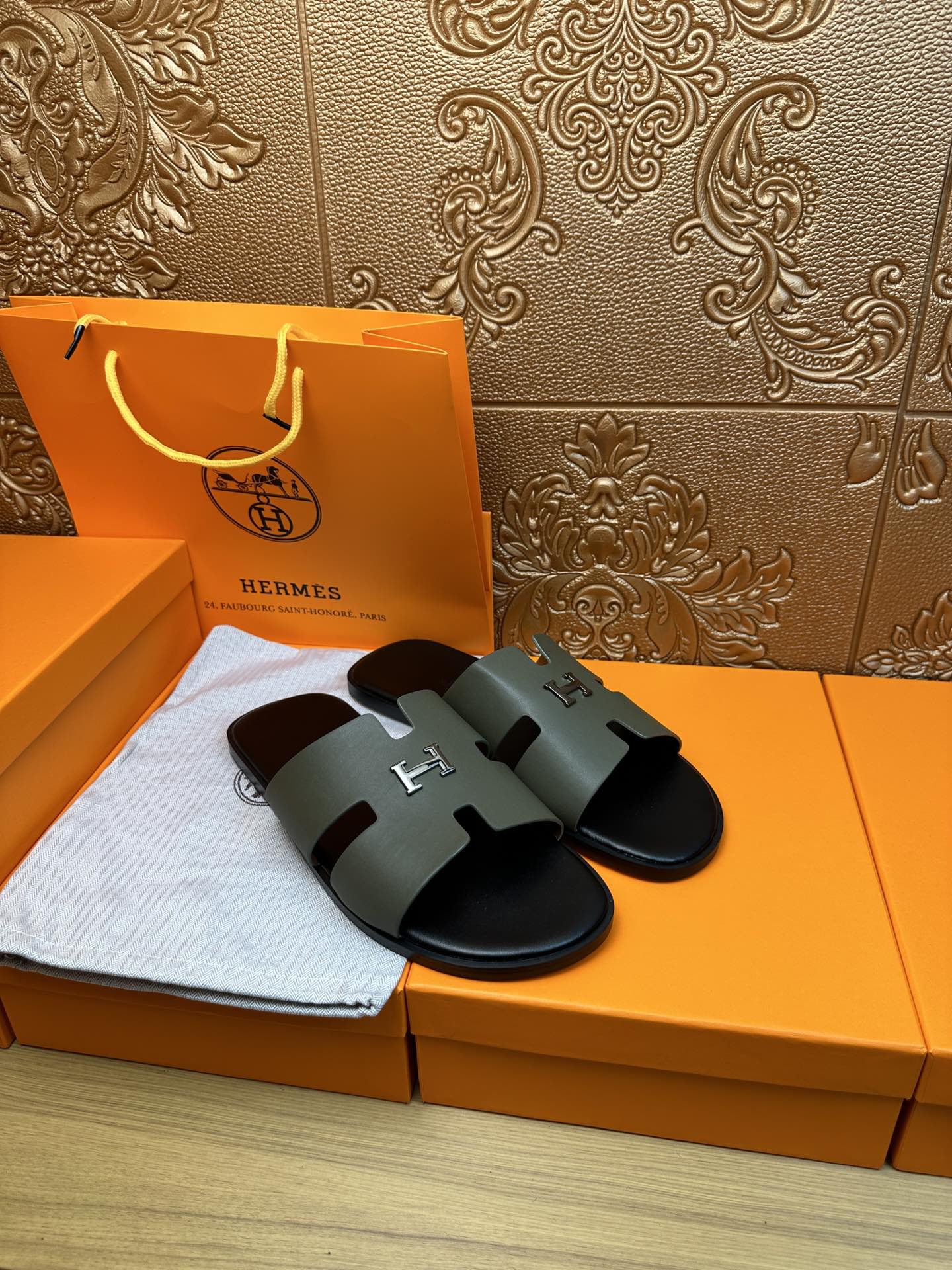 HM IZMIR H-BUCKLE SANDAL ARMY CALFSKIN