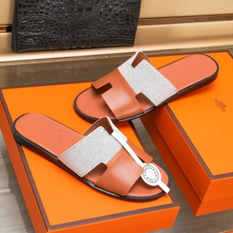 HM IZMIR SANDAL ORANGE AND WHITE LAMBSKIN