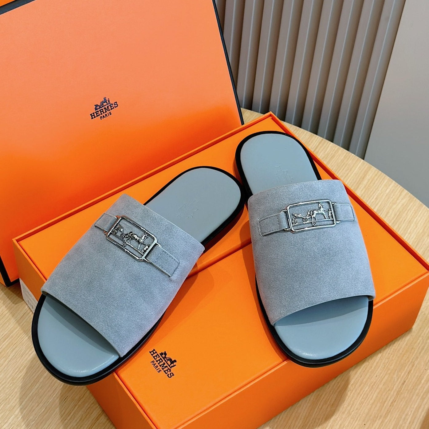 HM SILVER BUCKLE SLIPPERS CERULEAN SUEDE