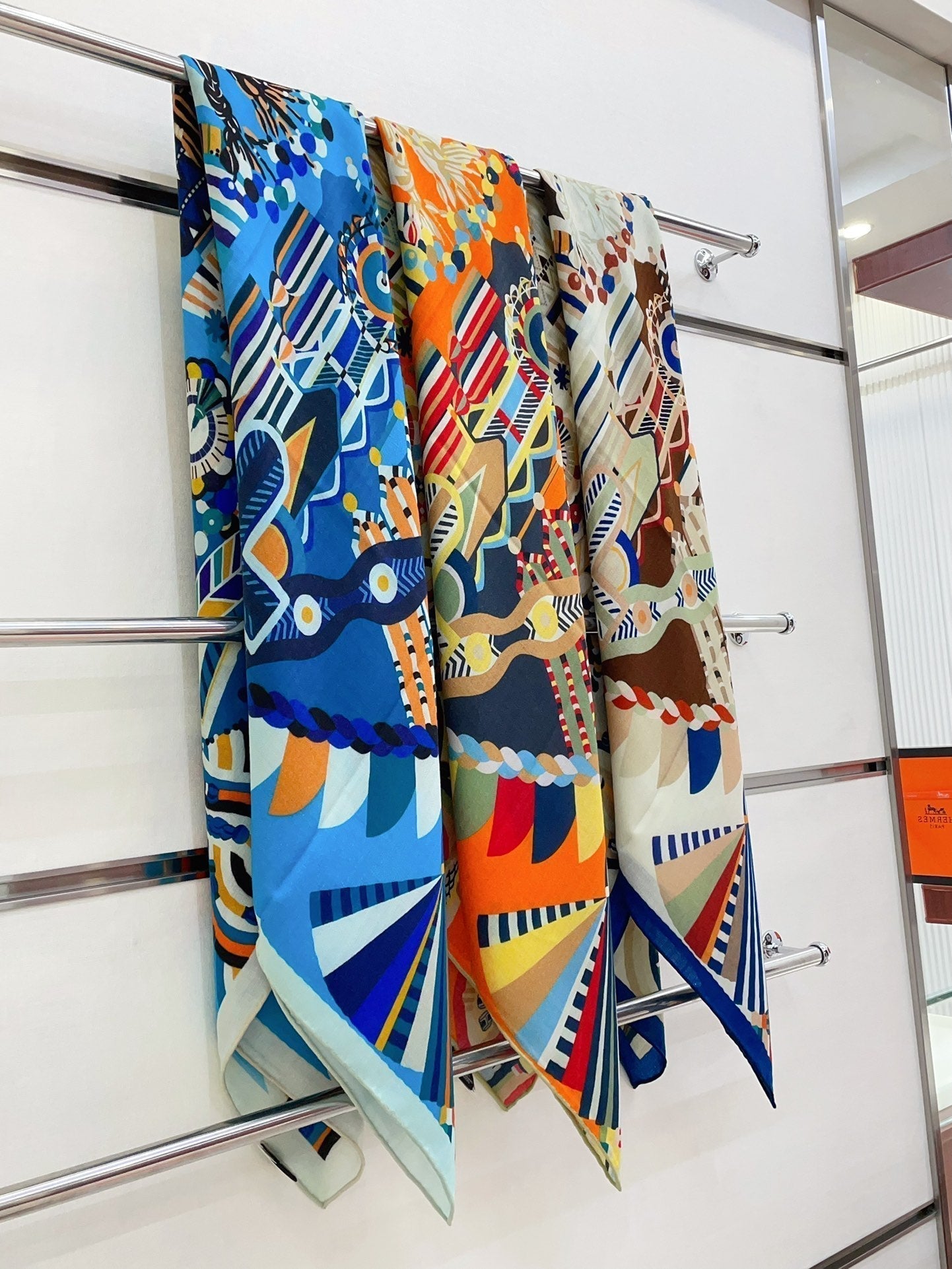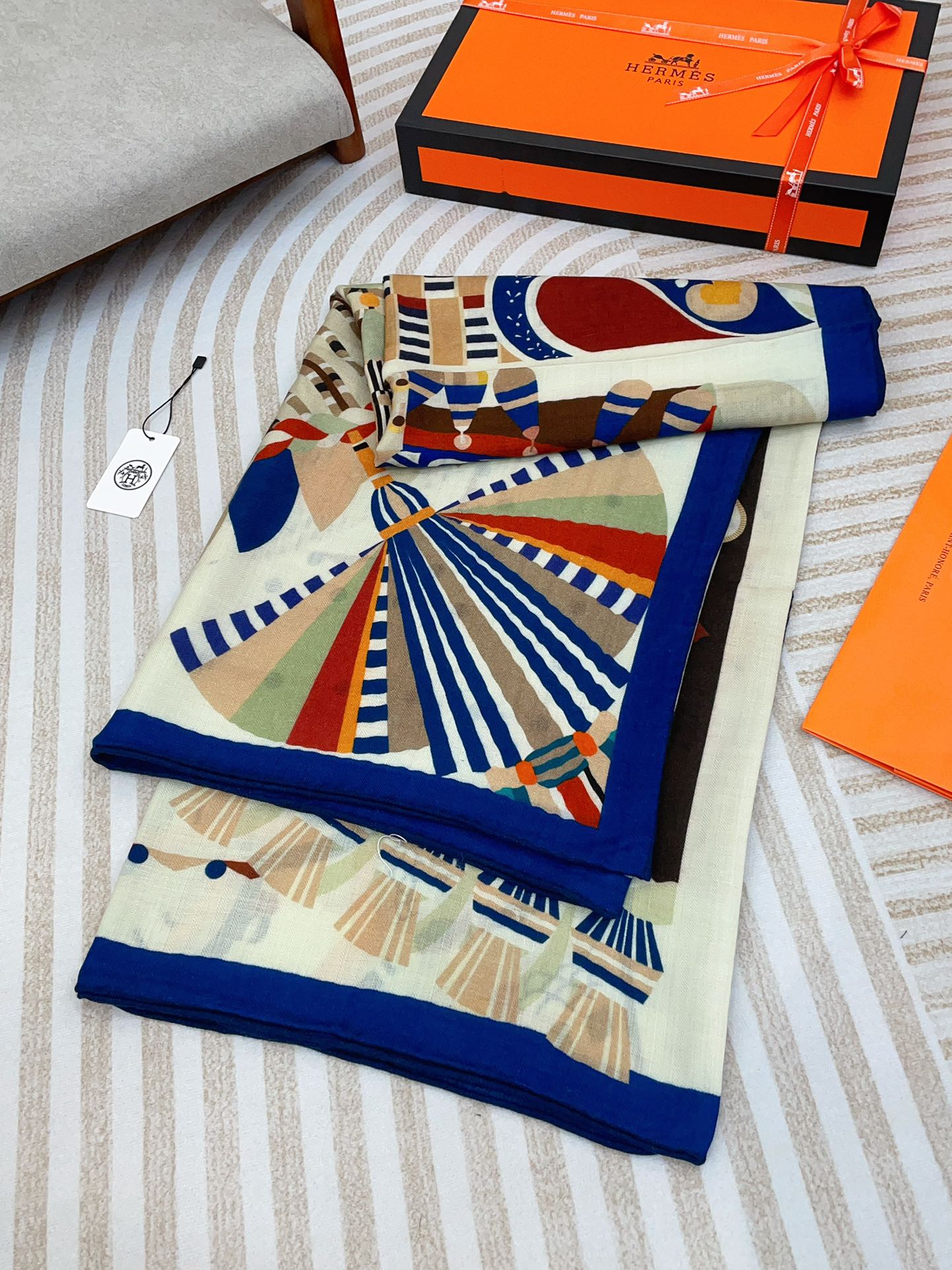 Haute Parure Scarf 135 CM White Colorful Cashmere And Silk 405067