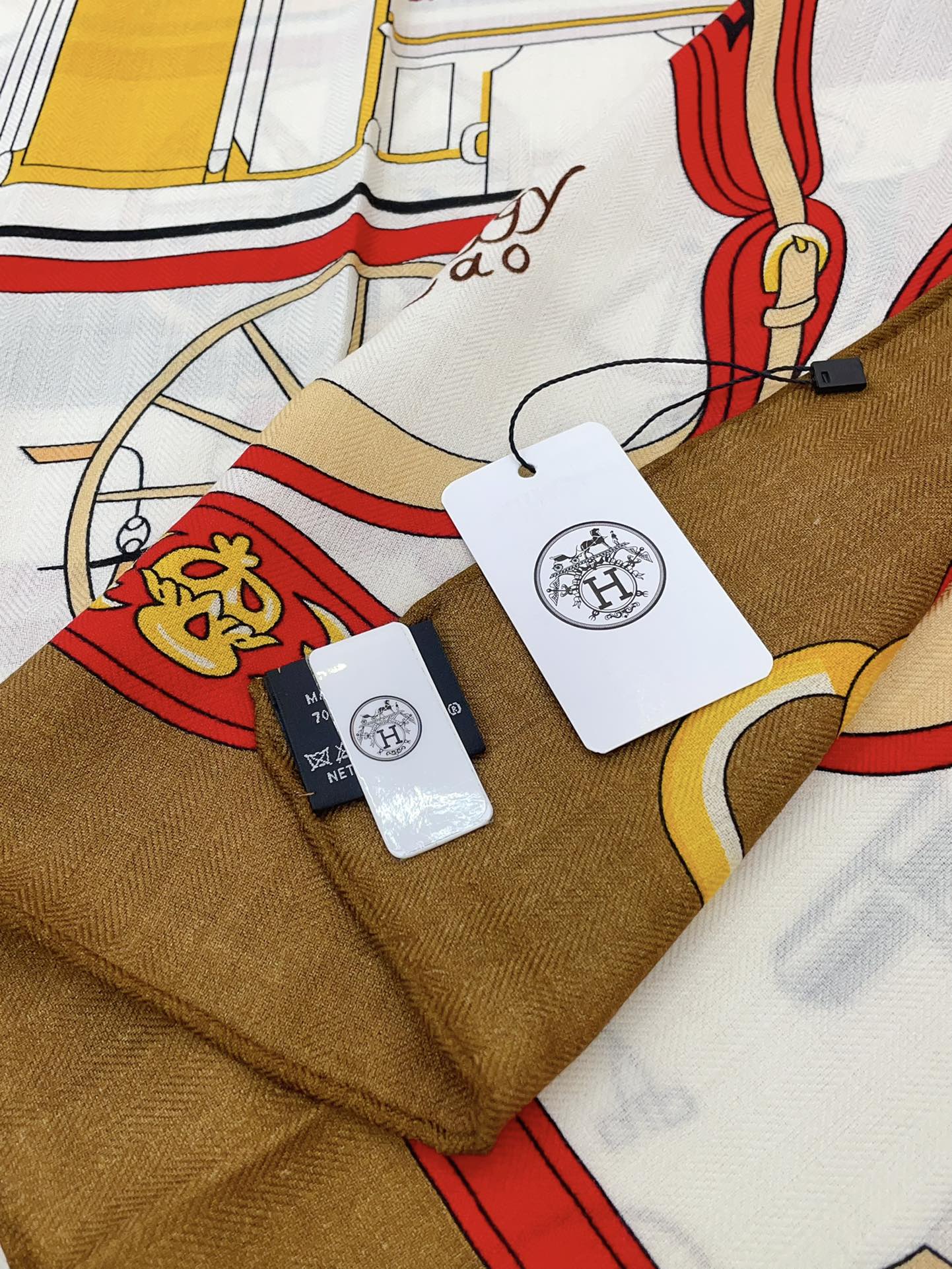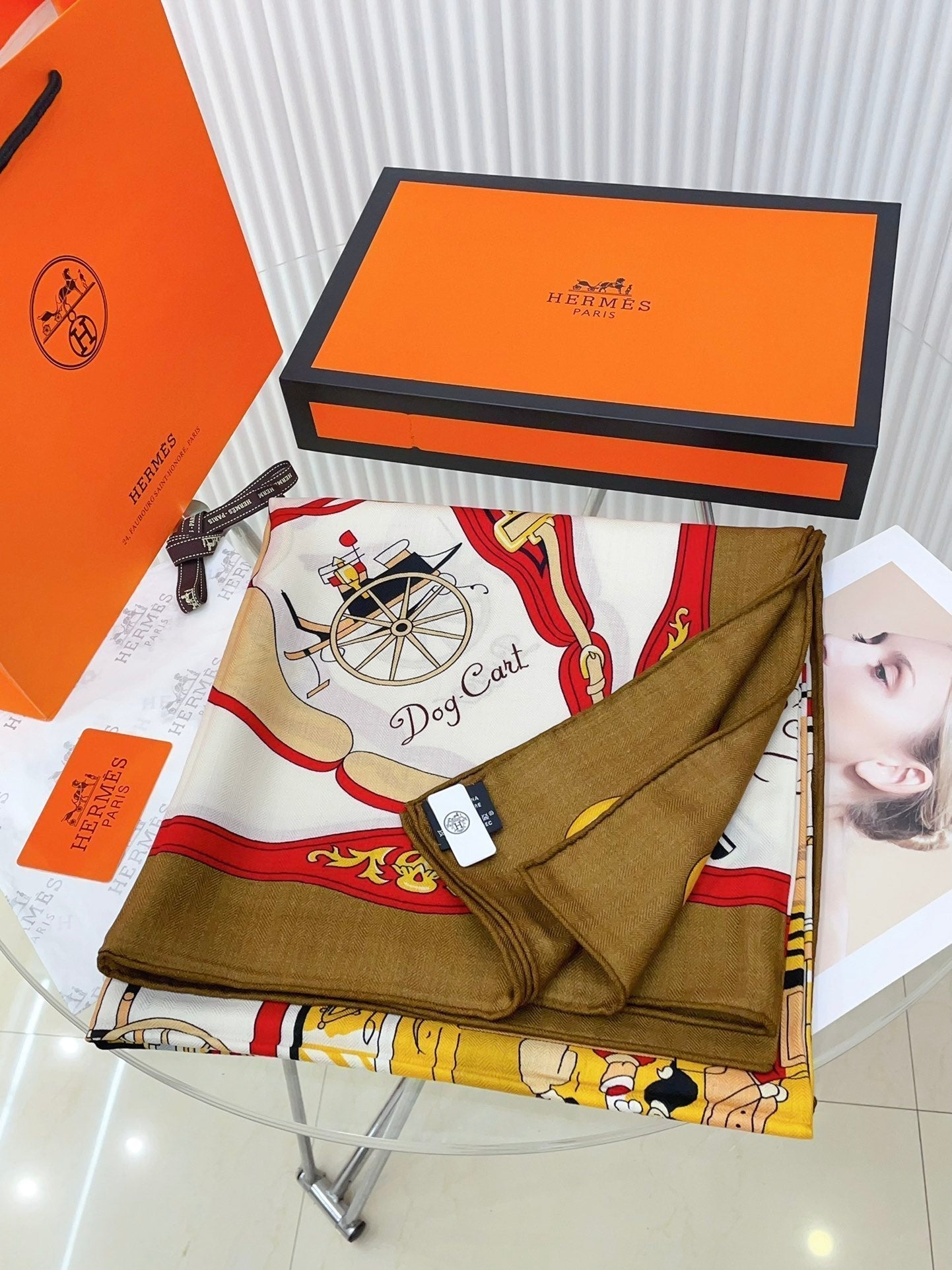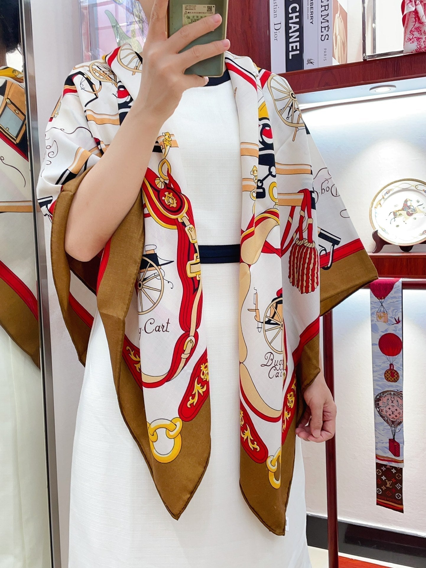 Palonniers Scarf 135 CM In Brown Colorful Cashmere And Silk 327474