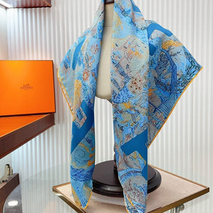 Faubourg Party Scarf 90 CM In Blue Colorful Silk Twill 198582