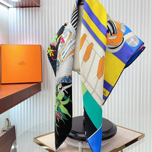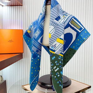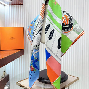 First & Chic Scarf 90 CM In Grey Blue Colorful Silk Twill 202493