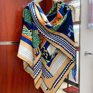 Fantaisie d'Etriers Shawl 140 CM Green Mix Blue Colorful Silk