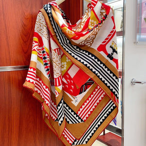 Fantaisie d'Etriers Shawl 140 CM Red Colorful Silk