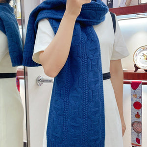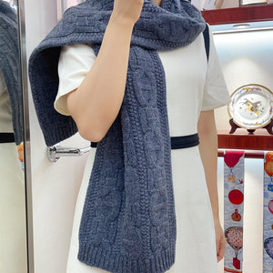 Faubourg Muffler Scarf 170 CM Blue Cashmere Handwoven 356202