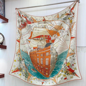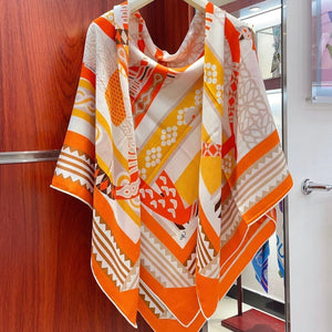 First & Chic Scarf 90 CM In Orange Colorful Silk Twill 202492