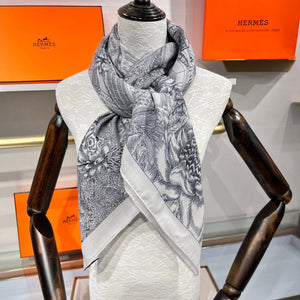 Faubourg Tropical Scarf 135 CM Grey White Cashmere And Silk
