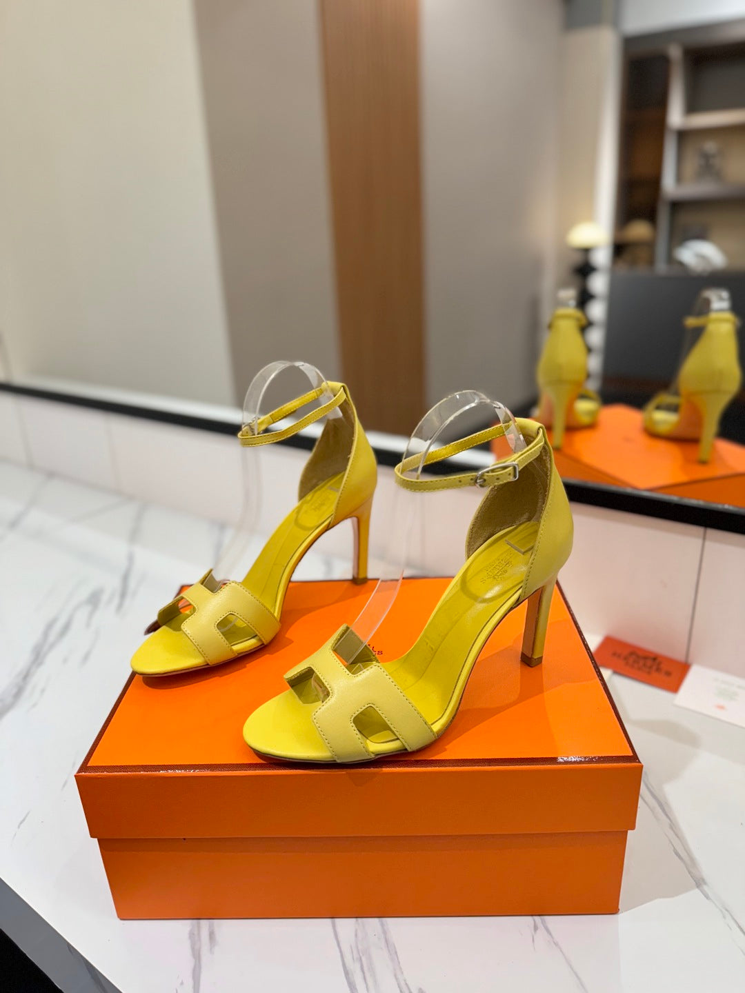 HM Joy 90mm Heeled Sandals Yellow Flat Cowhide 294924