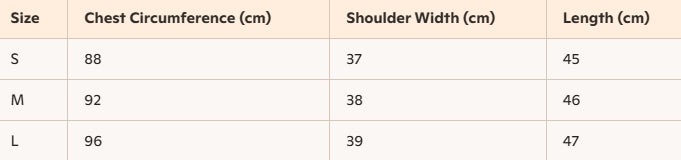- Size : S, M, L