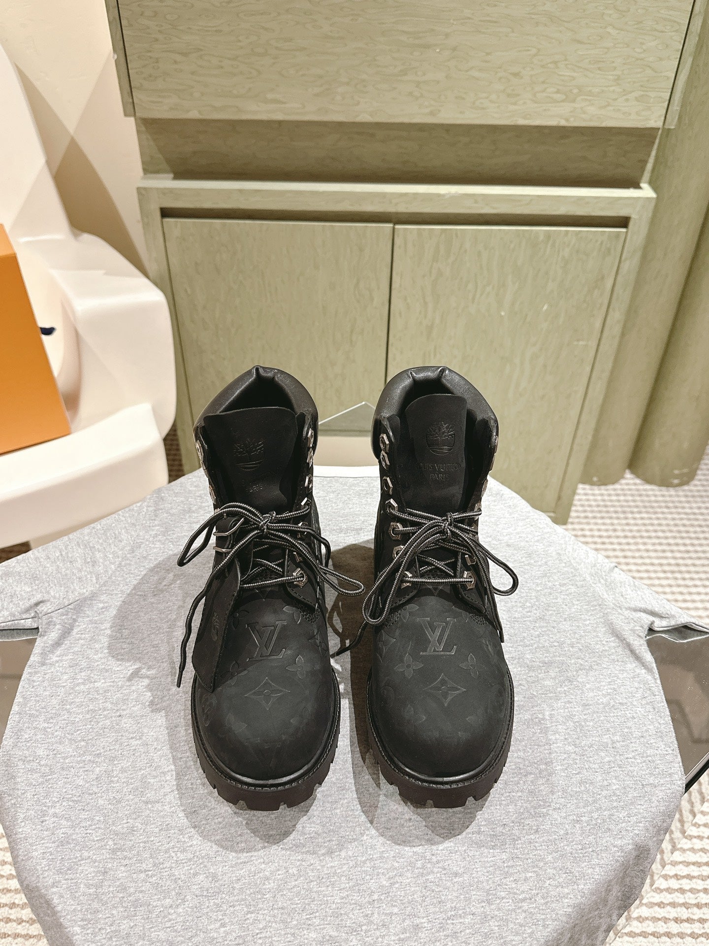 LV x Timberland 6in Ankle Boot 50mm Black Monogram Embossed Suede 450425