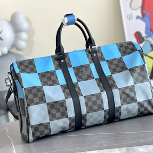 KEEPALL 50 BANDOULIERE BLUE DAMIER GRAPHITE