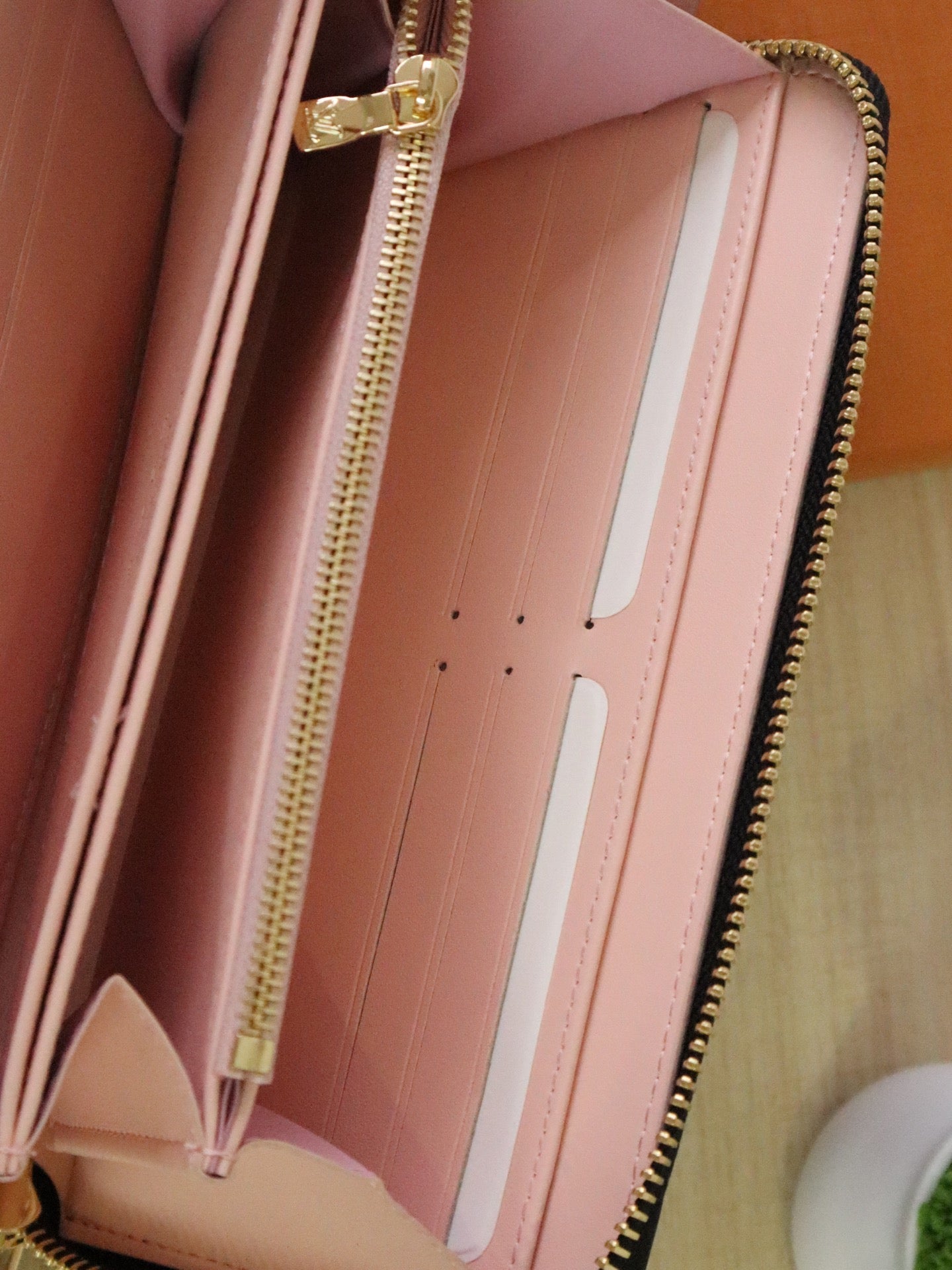 LV × TM Zippy Wallet 19.5cm Black Pink Monogram Embossed Lambskin GHW