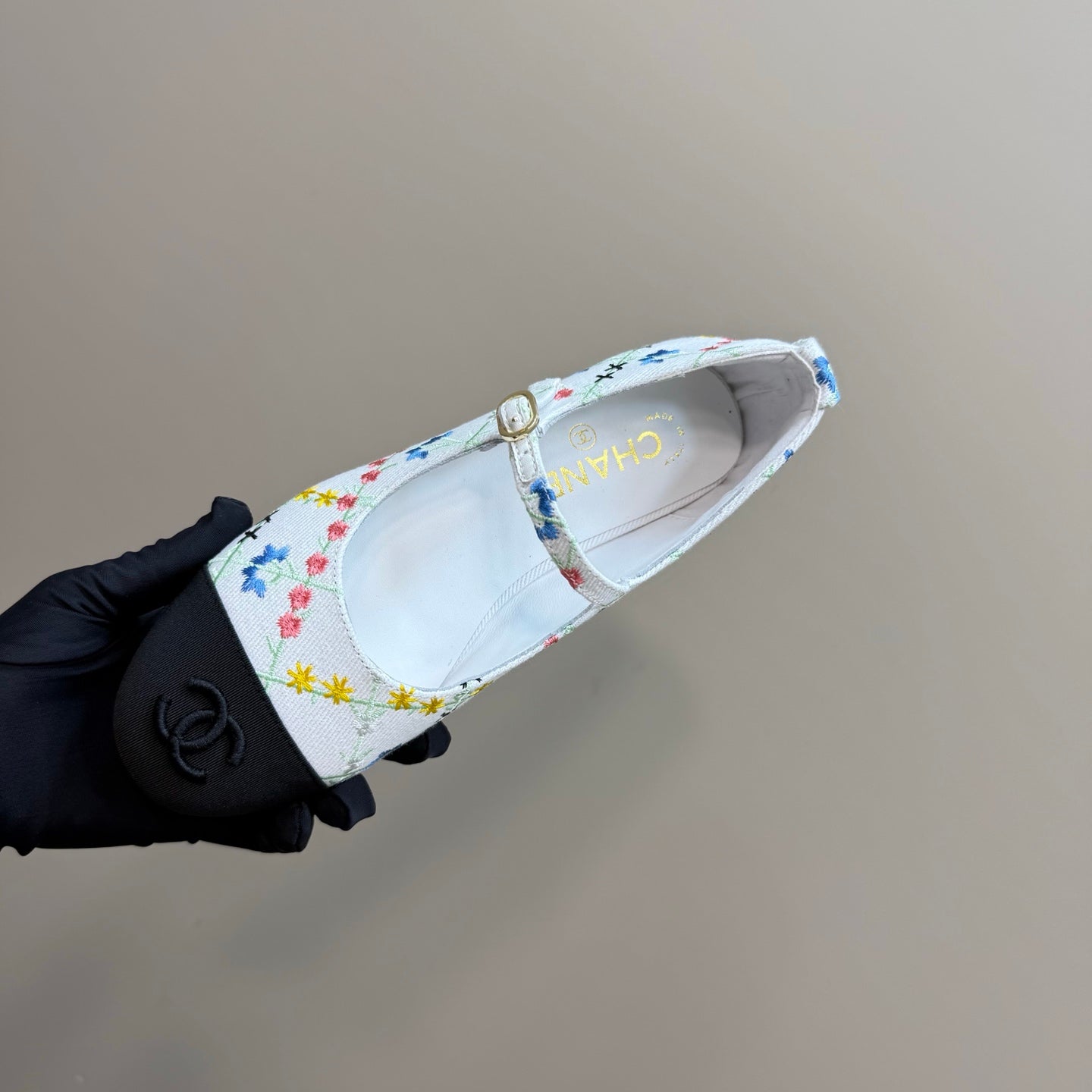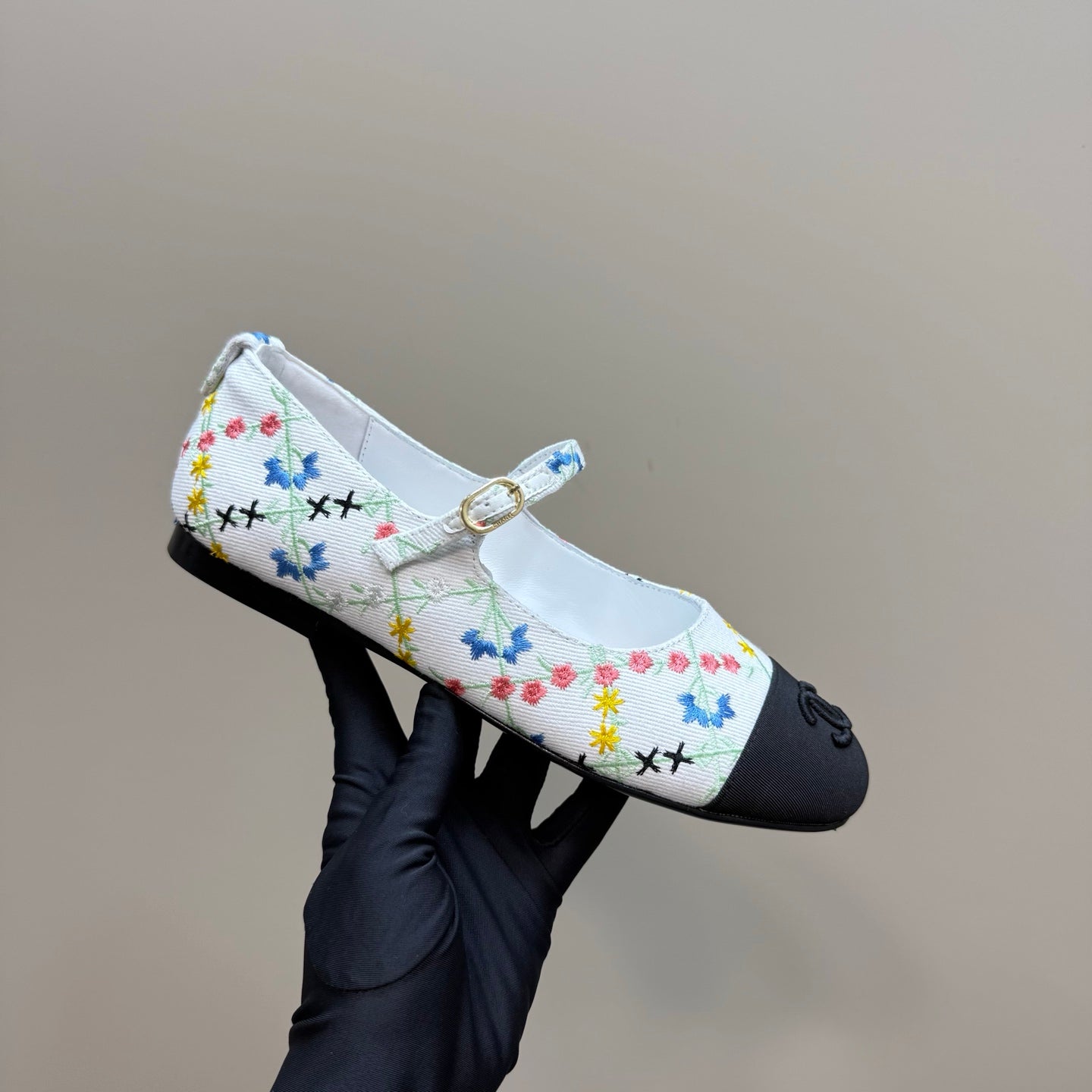 CC 25 Mary Jane Flats White Pattern Fabric 239405