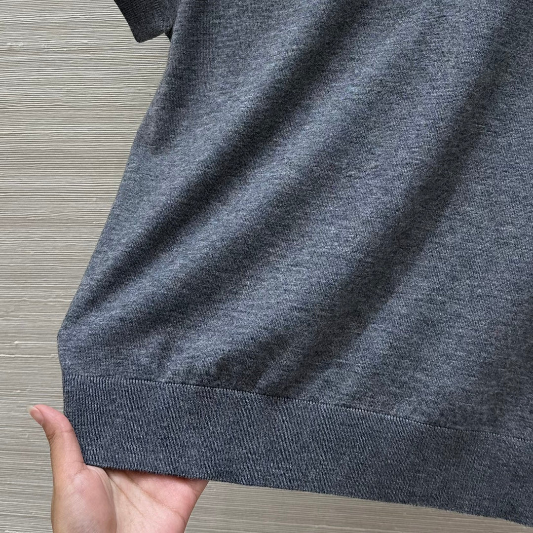 Miu Miu 25 Polo Collar Short-sleeve Knitted Top Gray Wool