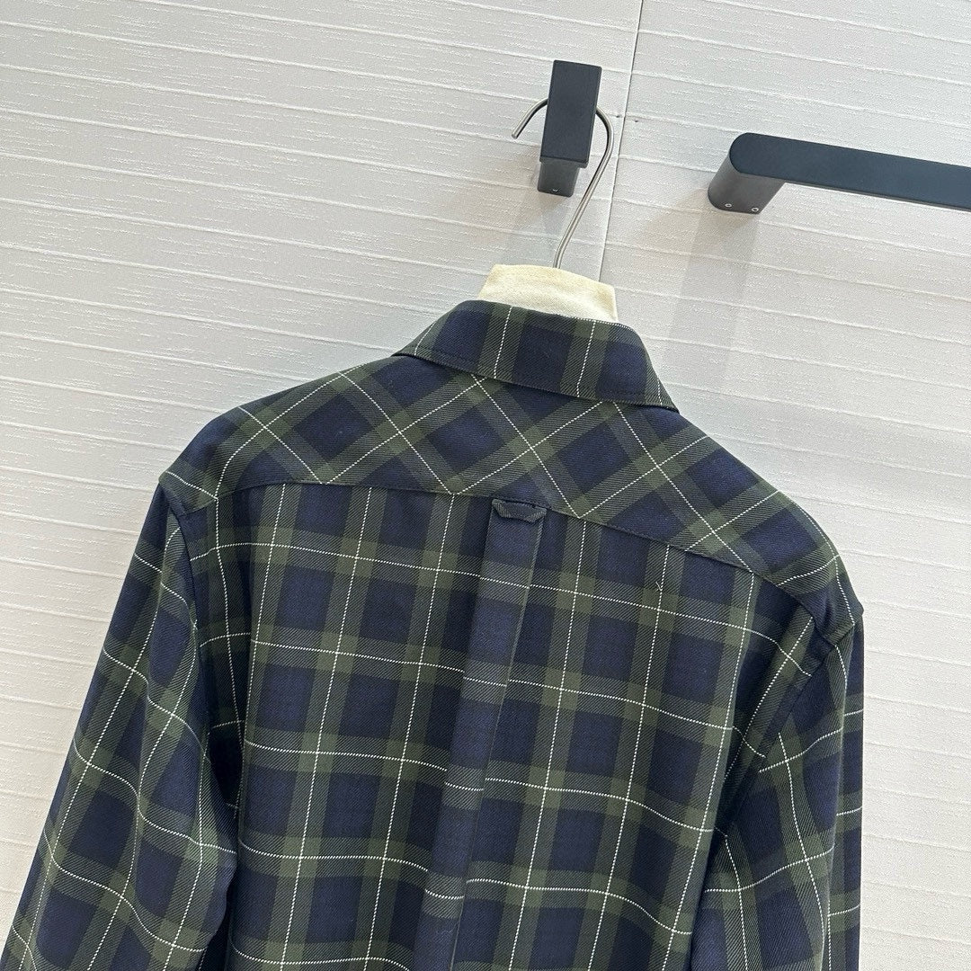 Miu Miu Plaid Short-cut Shirt Green Blue Wool
