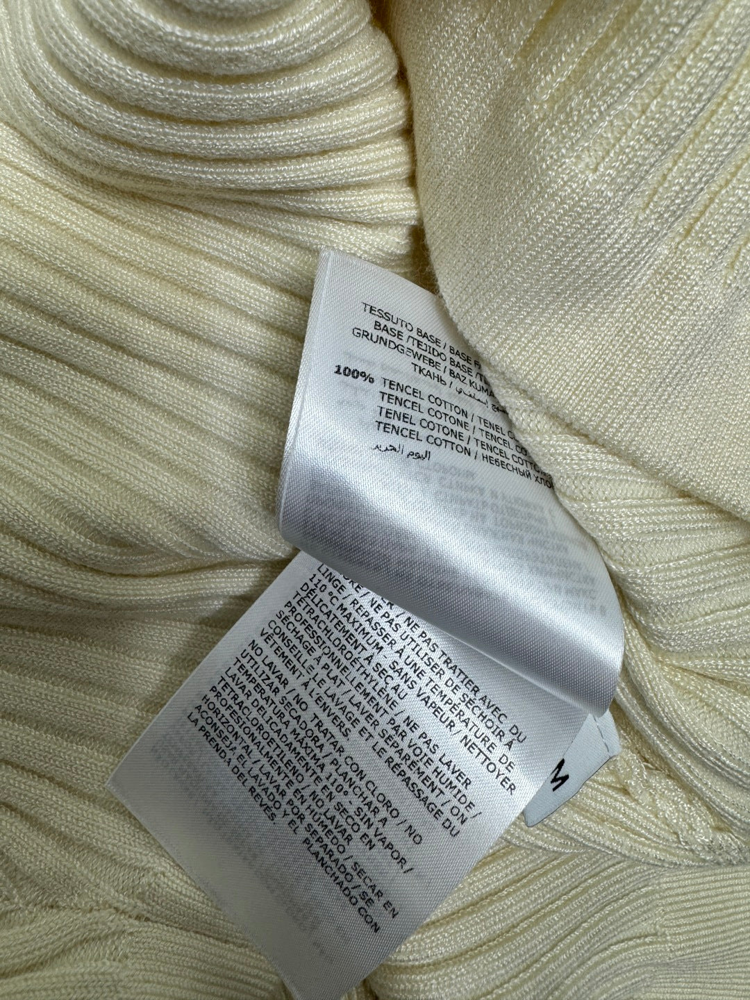 Moncle Beaded Lapel Knit Short-Sleeve Top Cream Tencel Cotton 255895