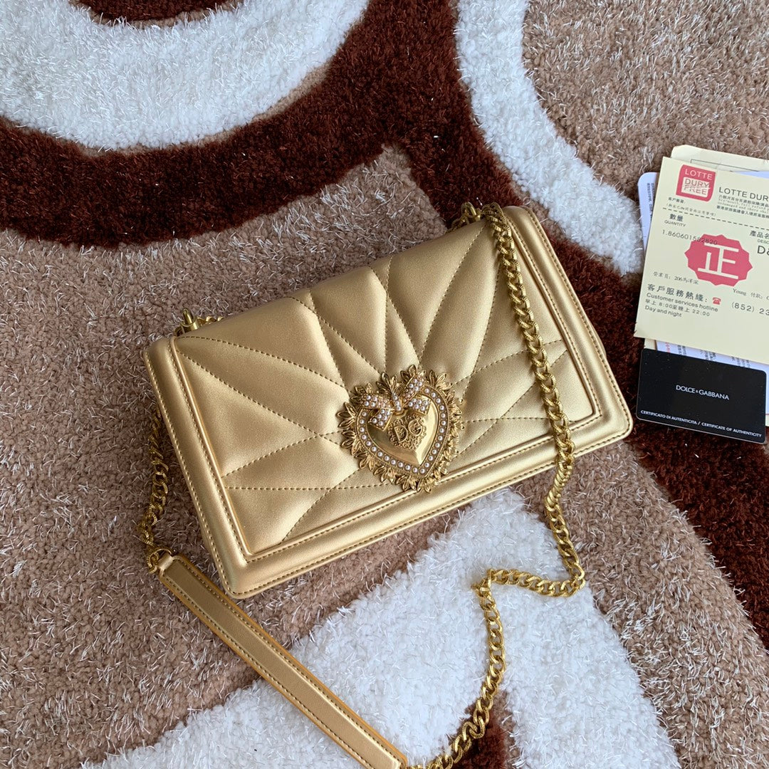 large devotion 26 shouder bag gold metalic cafskin