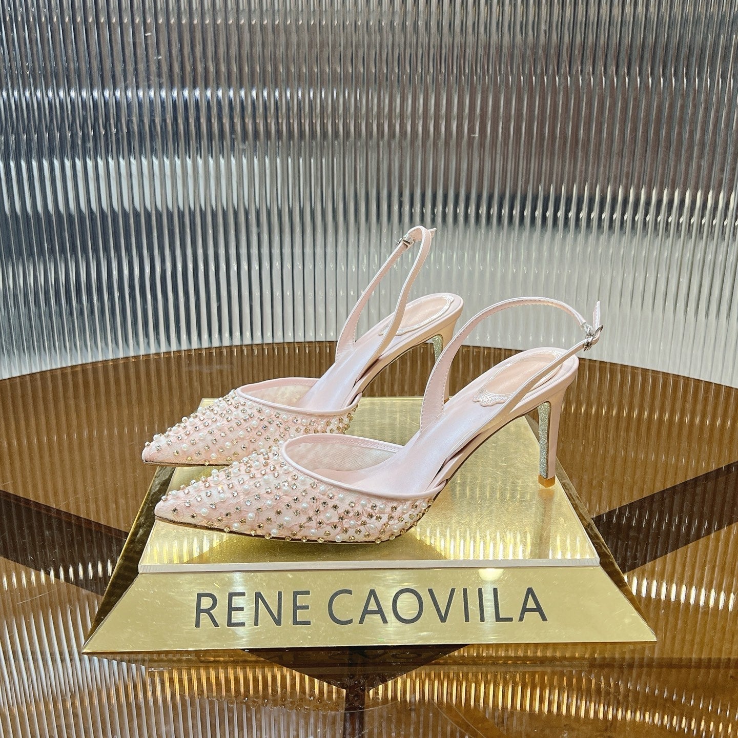 RC Slingback Shoe 7.5cm Pink Rhinestone Sheepskin 281986