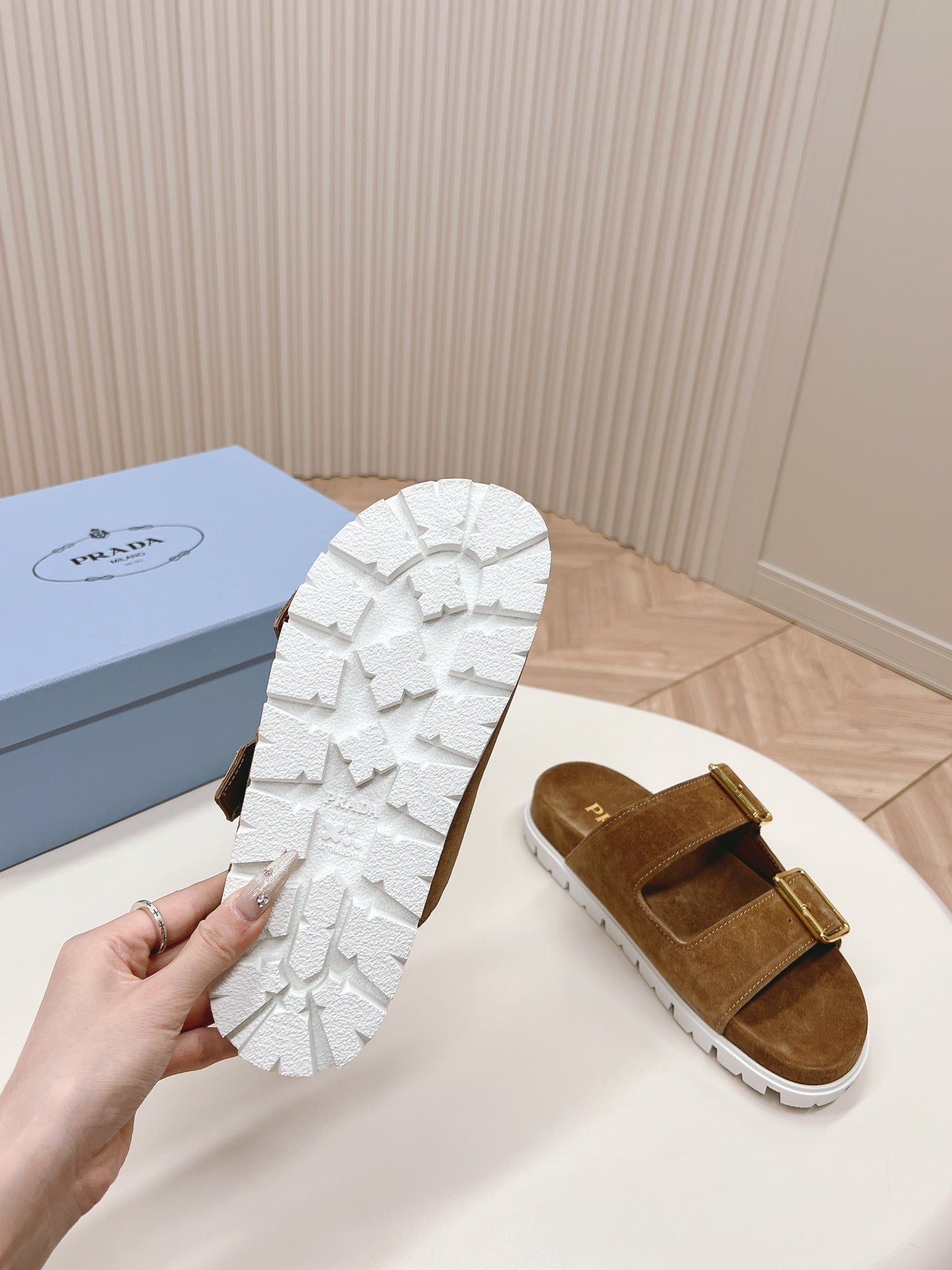 - Material: Suede Calfskin, Rubber soles