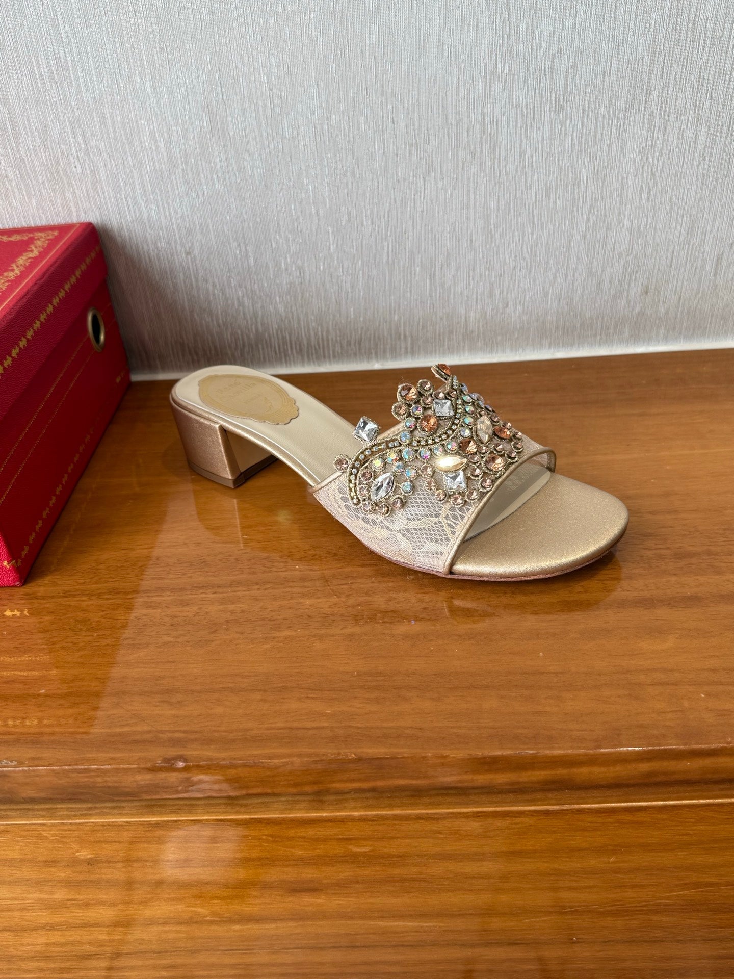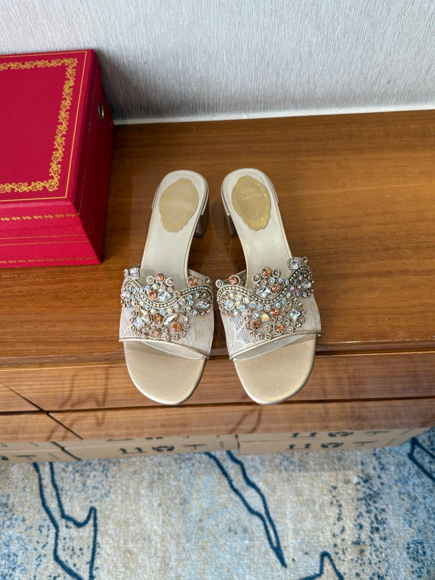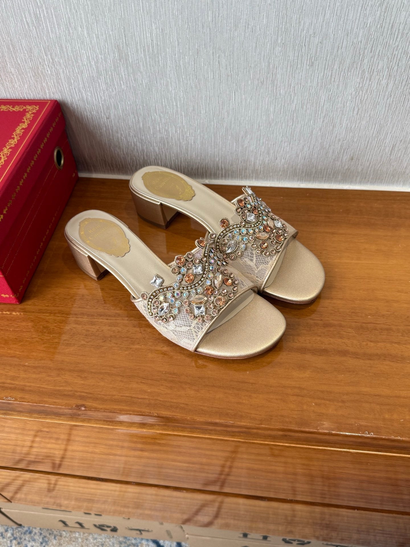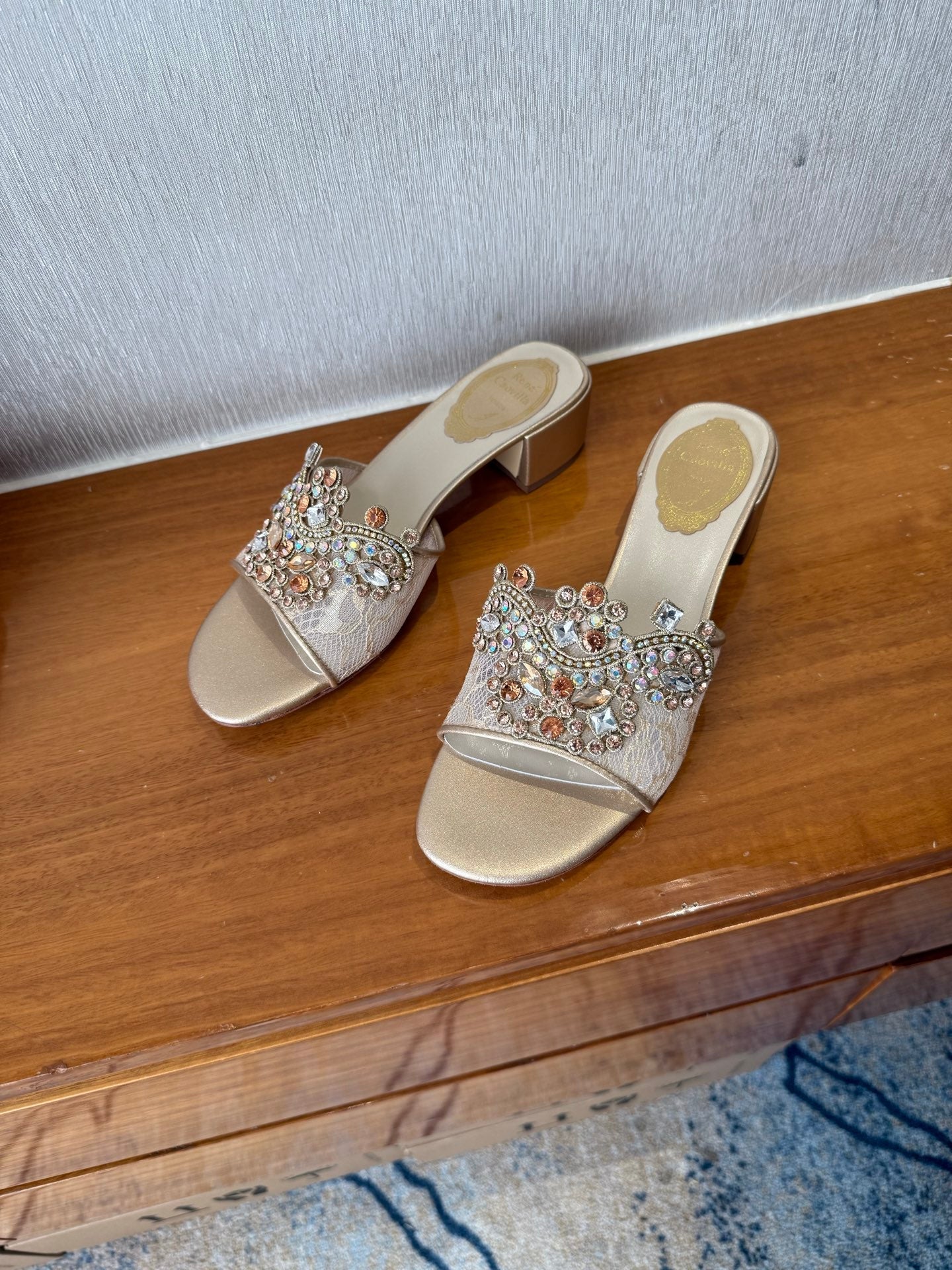 RC 25 Crystal Chandelier Sandals Beige Sheepskin 221962