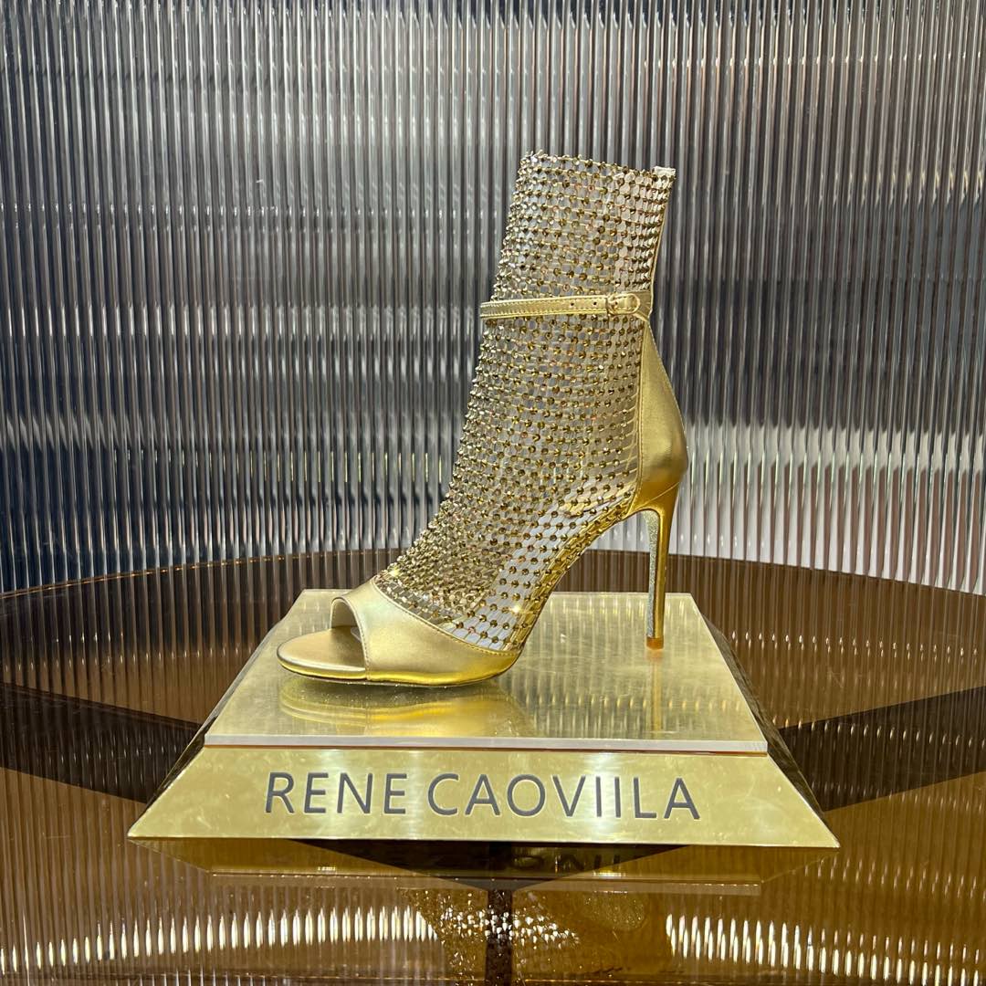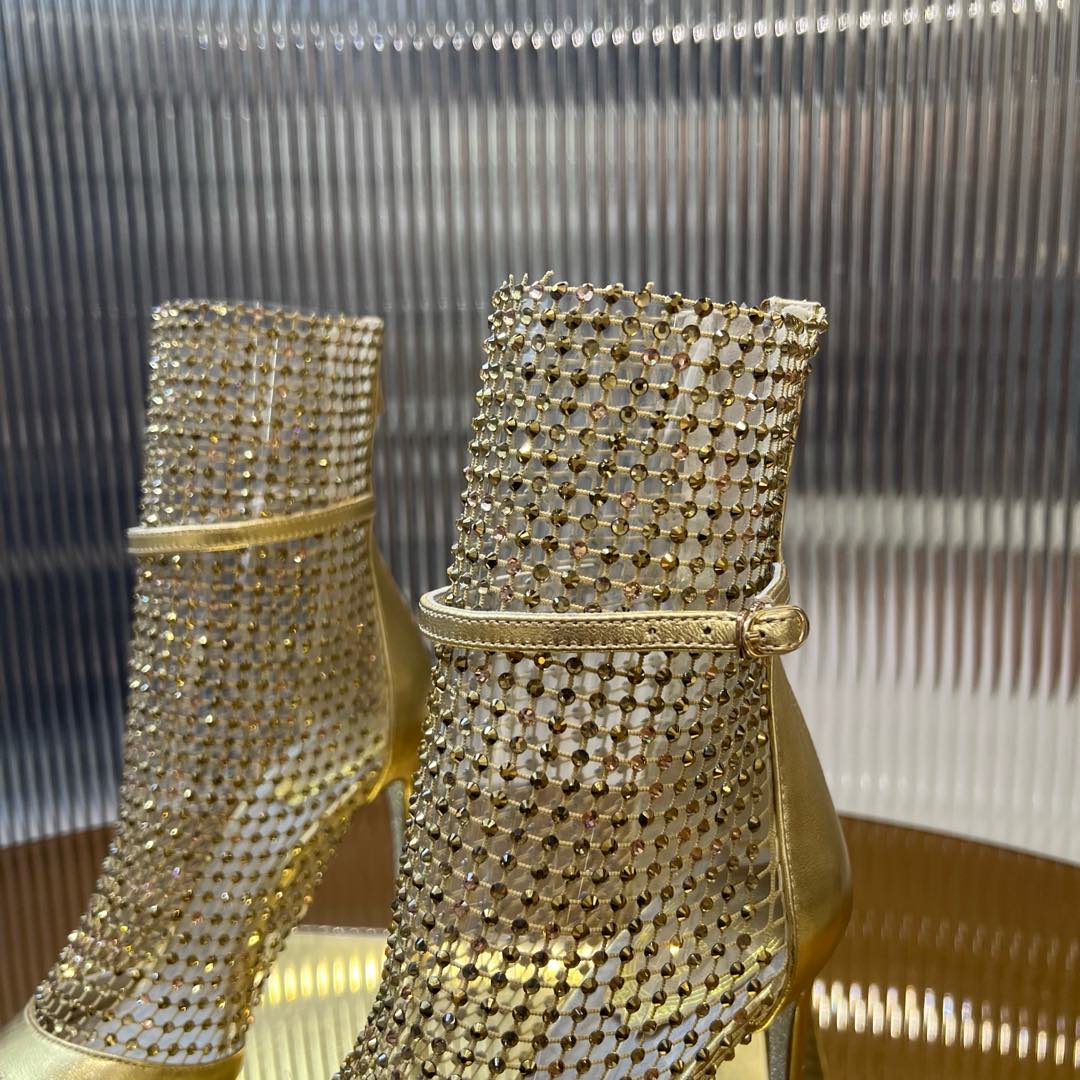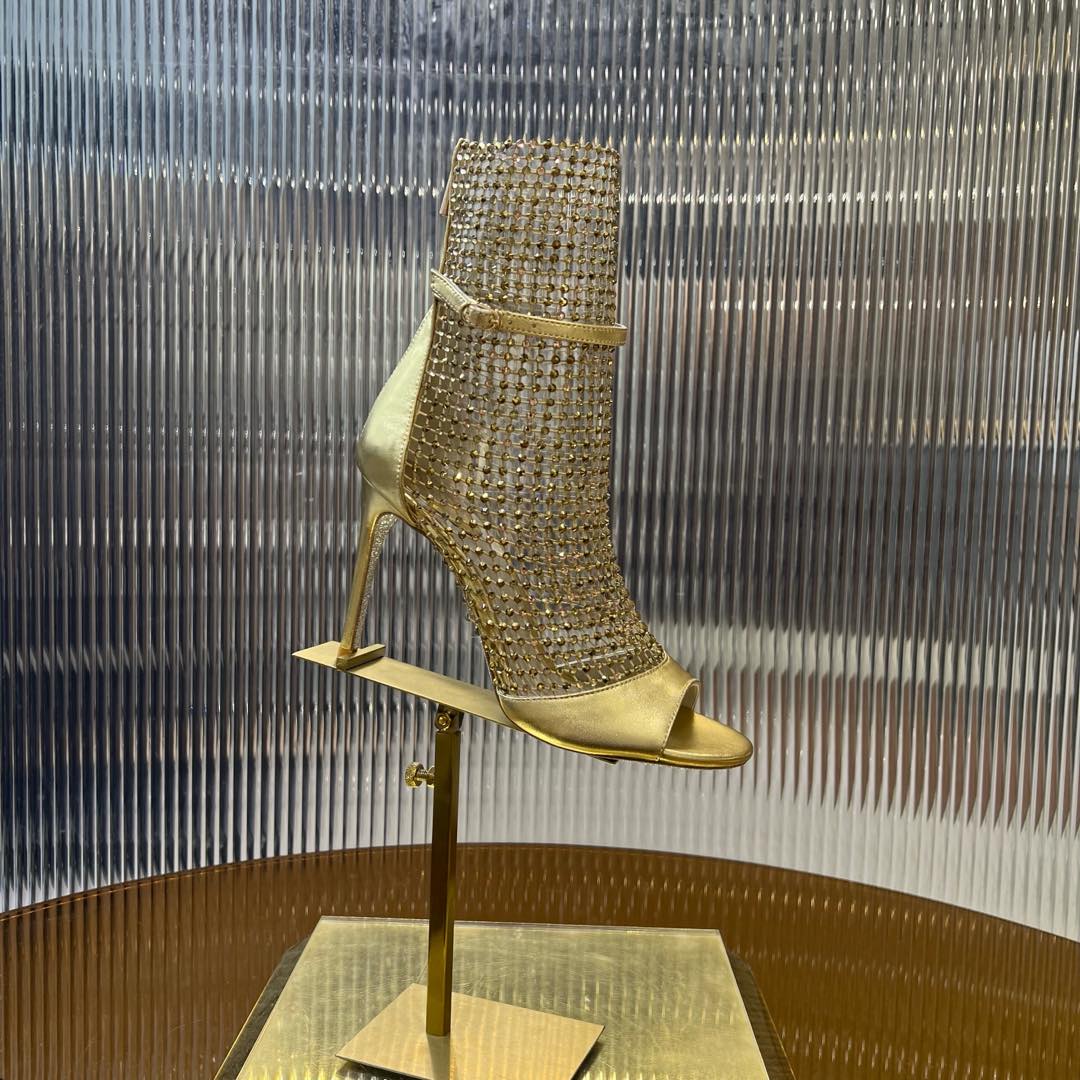 RC 25C High Heel Short Boots Mid-Tube Open-Toe Sandals Gold Sheepskin 174957